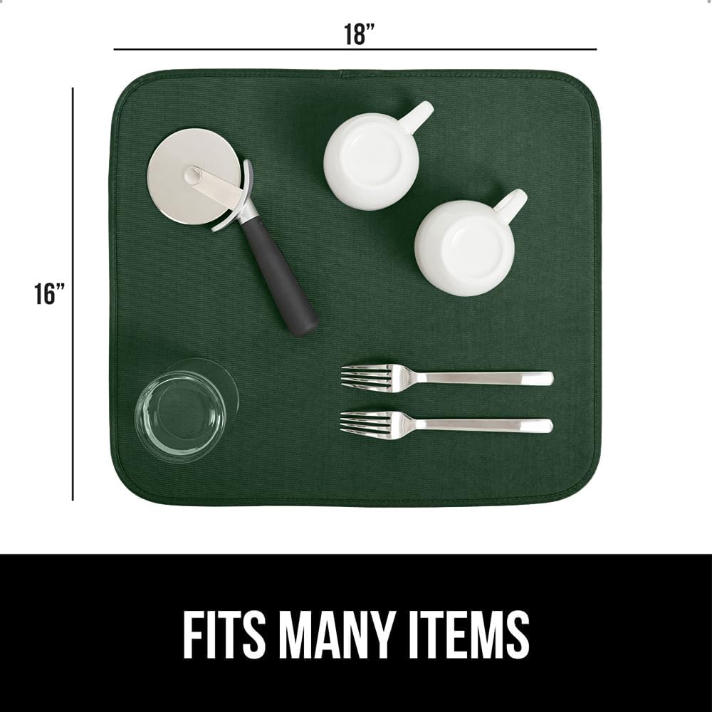 GORILLA GRIP Ultra Water Absorbent Microfiber Dish Drying Mat, Quick Dry Thick Mesh, Slip Resistant Pad for Sink Dishes Under Rack, Kitchen Counter Accessories, 16x18, Machine Wash, 2 PK Hunter Green
