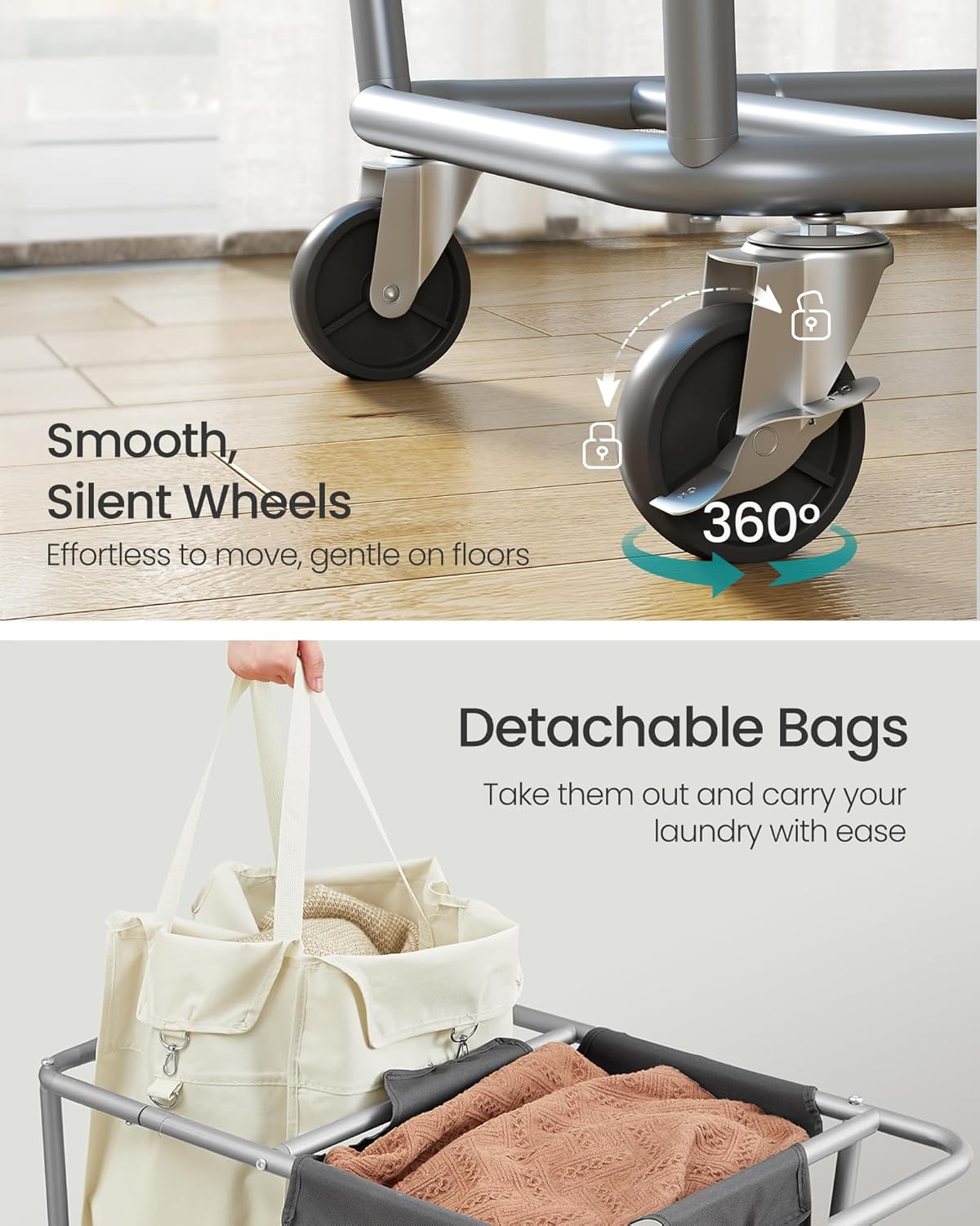 • Heavy-Duty Frame: Crafted with thick steel tubes, the rolling laundry basket stands up to daily use and supports heavy loads up to 66 lb without losing its shape