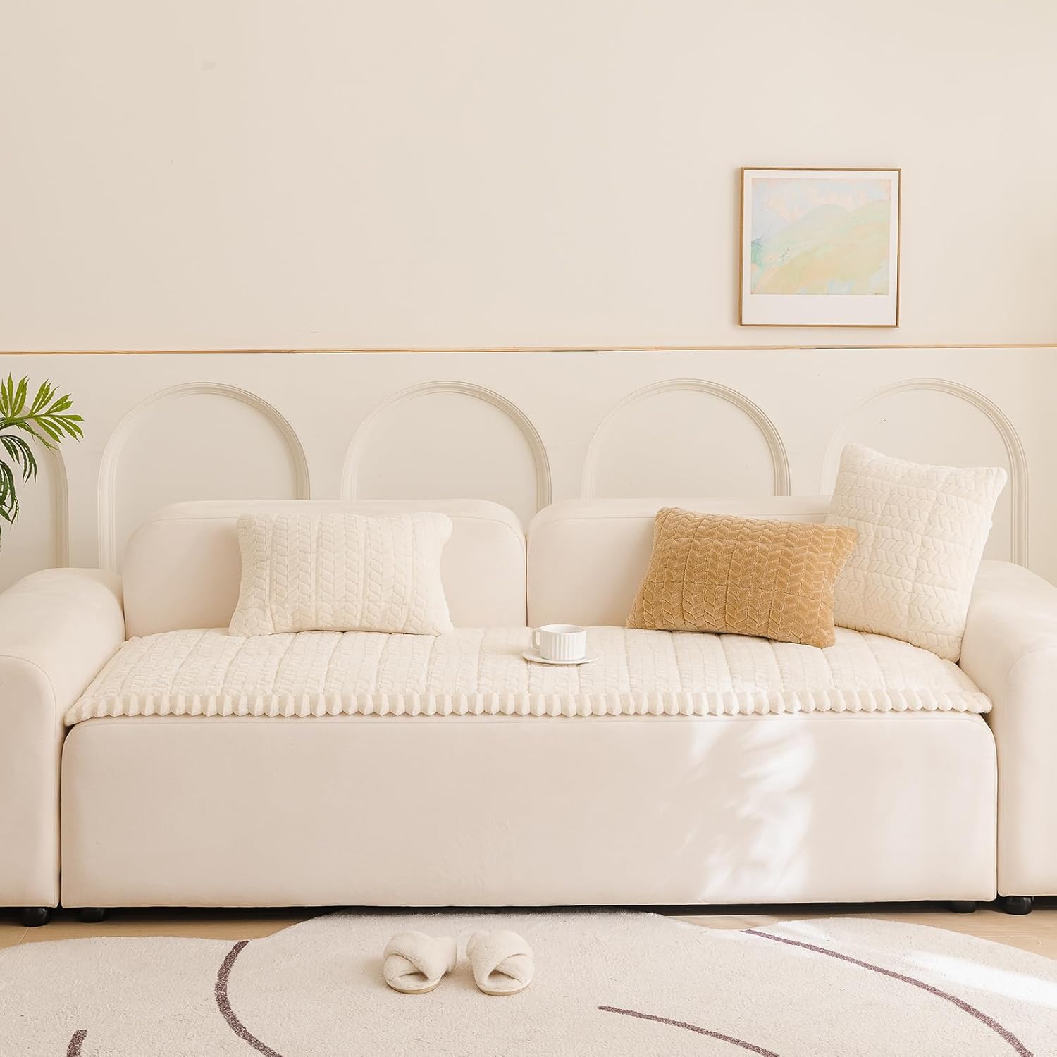 Mivnue Pet Couch Cover Protector Sofa Covers for Pets Washable Non Slip Couches and Sofas Dog Mat (Cream, 27.6" x 70.9")