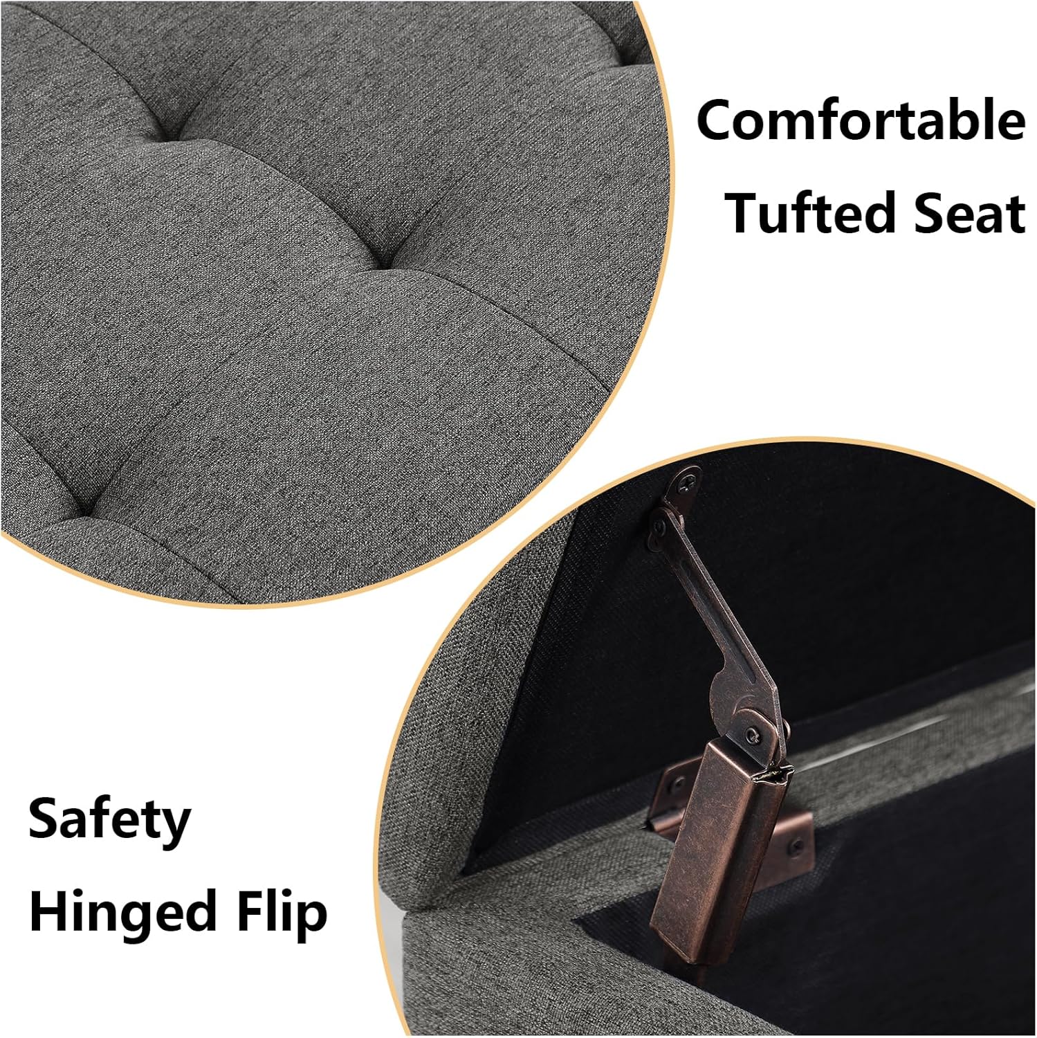 • DURABLE CONSTRUCTION: Constructed with wood frame, the ottoman bench seat with storage can support up to 250 pounds per unit. The fabric covering is easy to spot clean