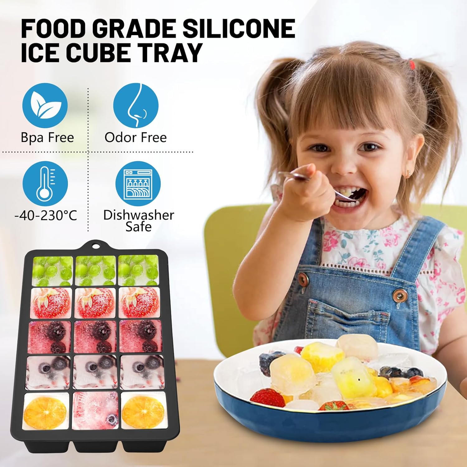 • Perfect Size Ice Cubes; 15 ice cube tray set of 3, each tray creates 15 nice-sized cubes, and you will get 45 ice cubes in total. Small cube size is 1.2 x 1.2 x 1.2 inches. Perfect for chilling whiskey, cocktails, drinks and fruit juice