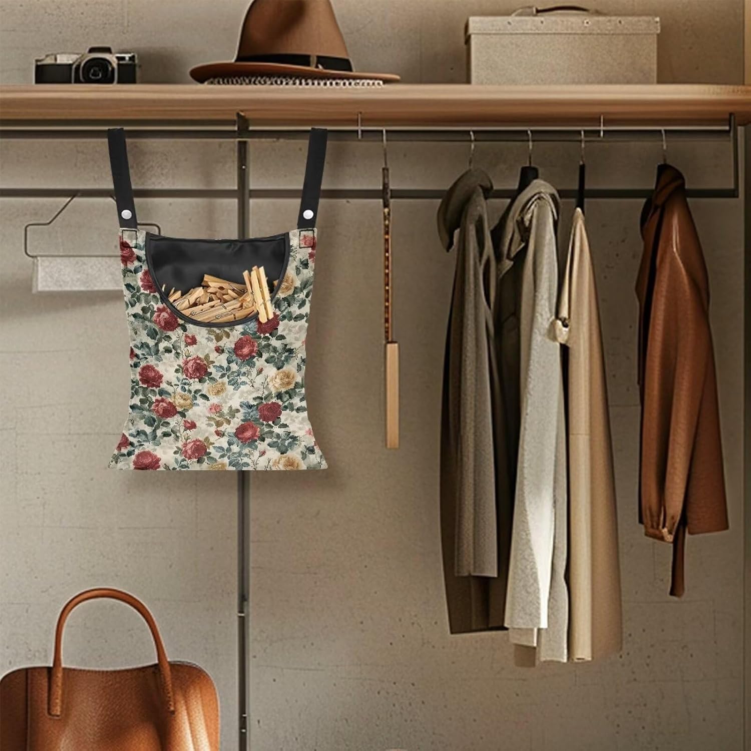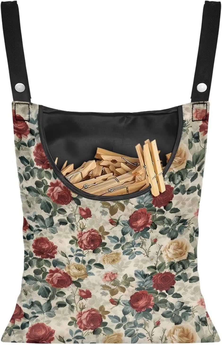 2 Pcs Rose Clothespin Laundry Bag, Clothes Lines for Clothes Outside, Hanging Storage Organizer with Hanging Rope for Home Outdoor