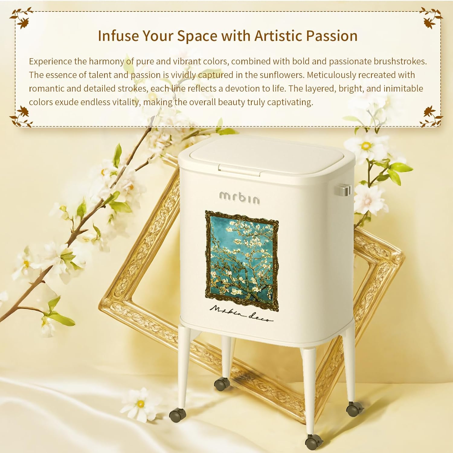 • Artistic Aesthetic in Decor: This decorative trash can features a classic apricot blossom pattern, embodying a sophisticated touch with art-framed paint ornaments. It reflects a taste for art and attitude in home decoration, blending seamlessly into any room's aesthetic.