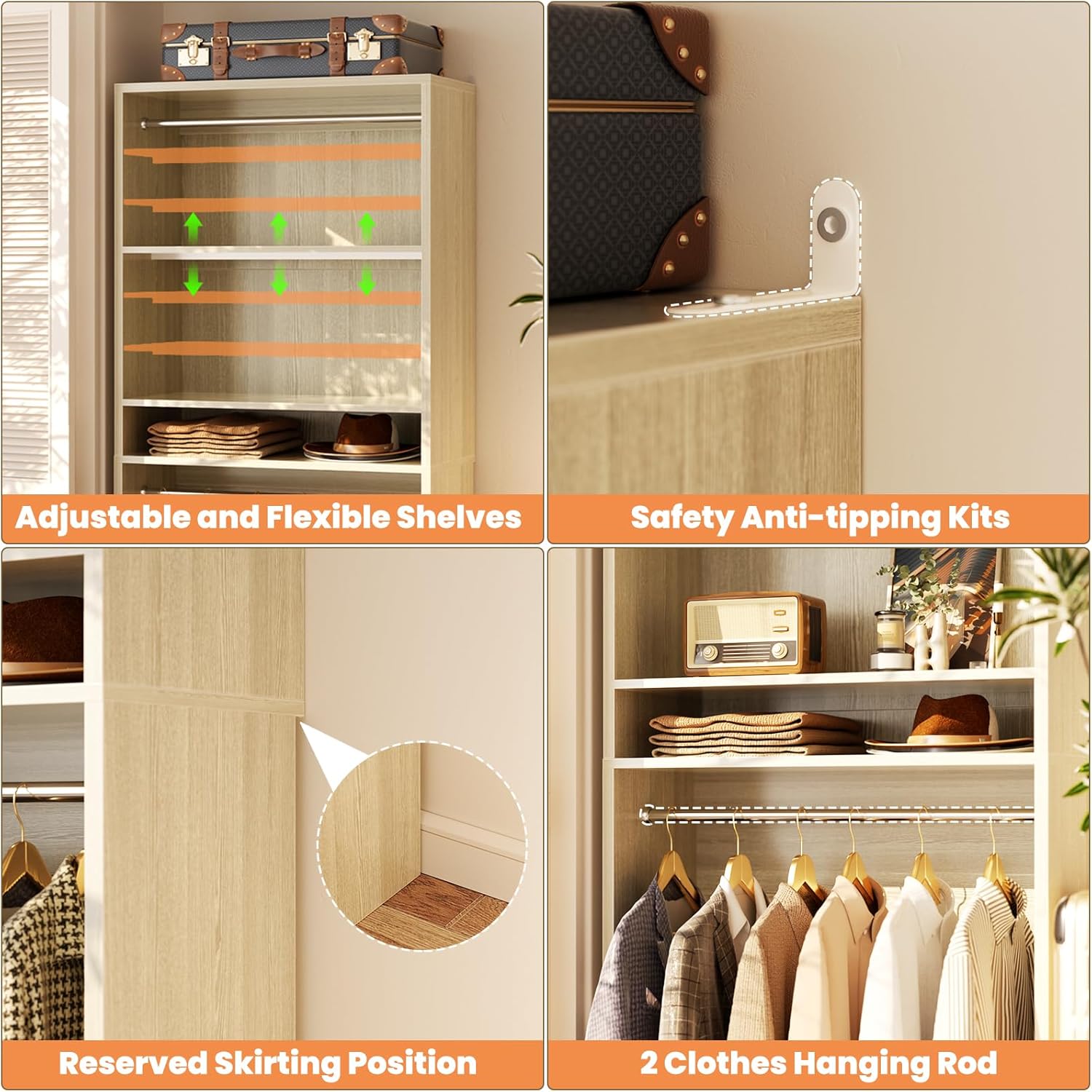 • 【Easy Assembly & Anti-Tip Safety】Due to the height of the closet system, we recommend having 2 people for installation. Includes step-by-step instructions and pre-labeled hardware for quick setup. Anti-tip restraint kits secure the unit to walls for safety.