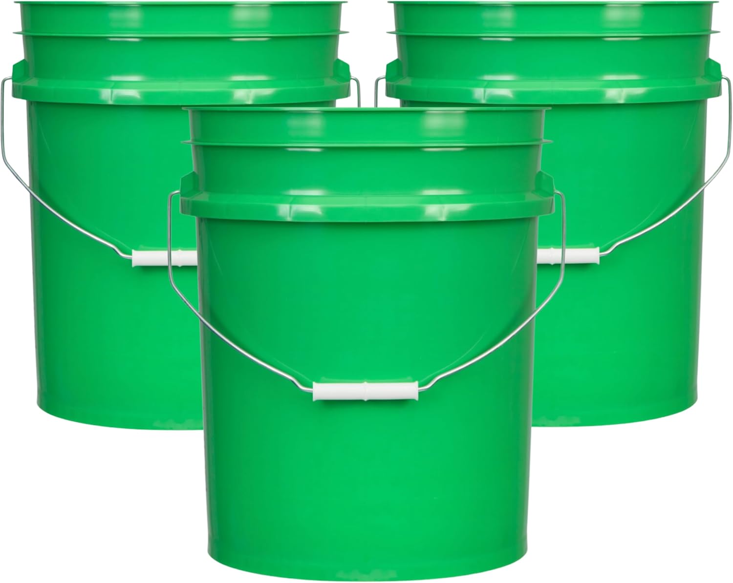 House Naturals 5 Gallon Premium HPDE Plastic Bucket - Made in USA Food Grade Storage Container, BPA Free All Purpose Pail (3, Green)