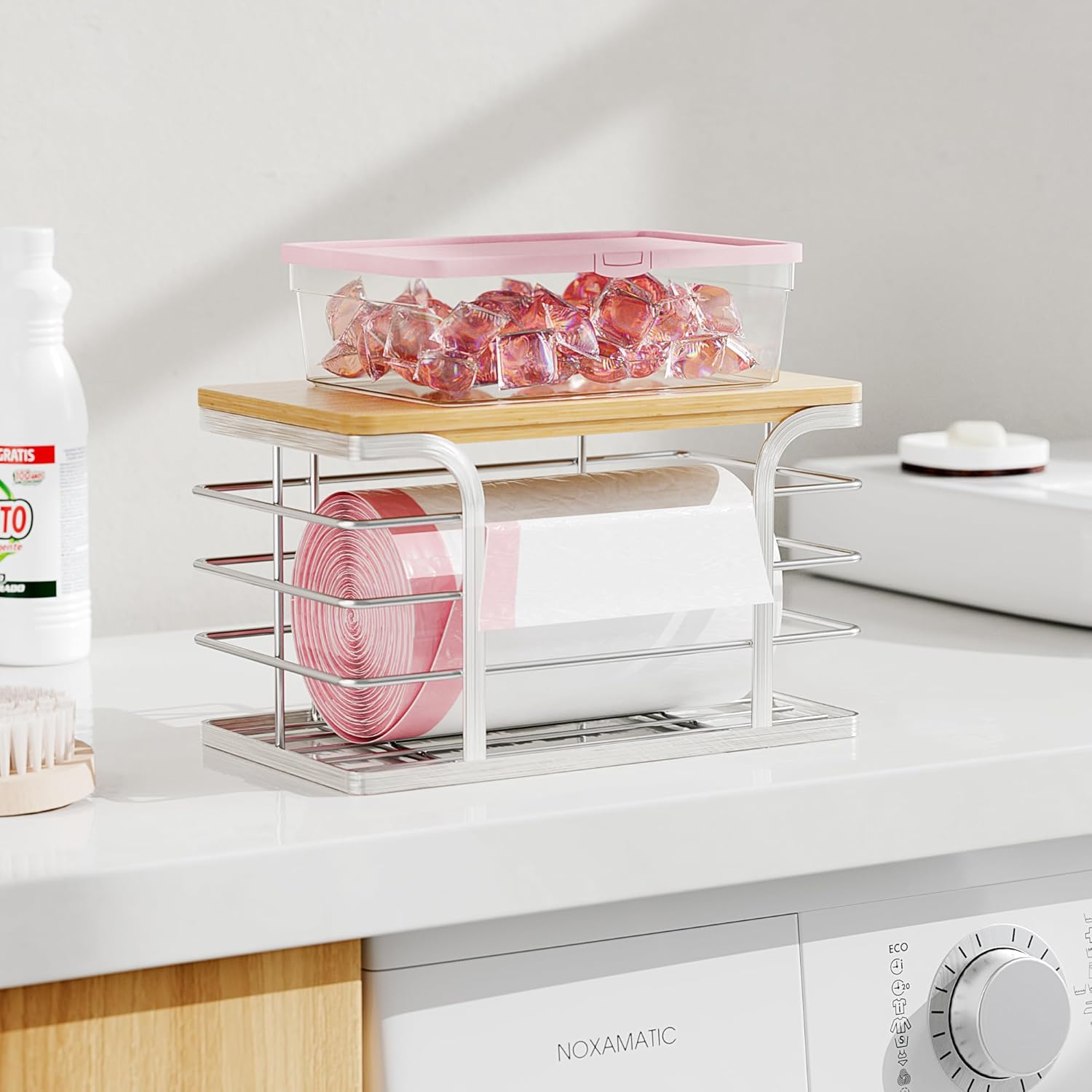 • Space Saving:The spacious front opening allows easy access. The bamboo top maximizes vertical space, fitting neatly on countertops, in cabinets, or under sinks. A great addition to your laundry room organizer setup