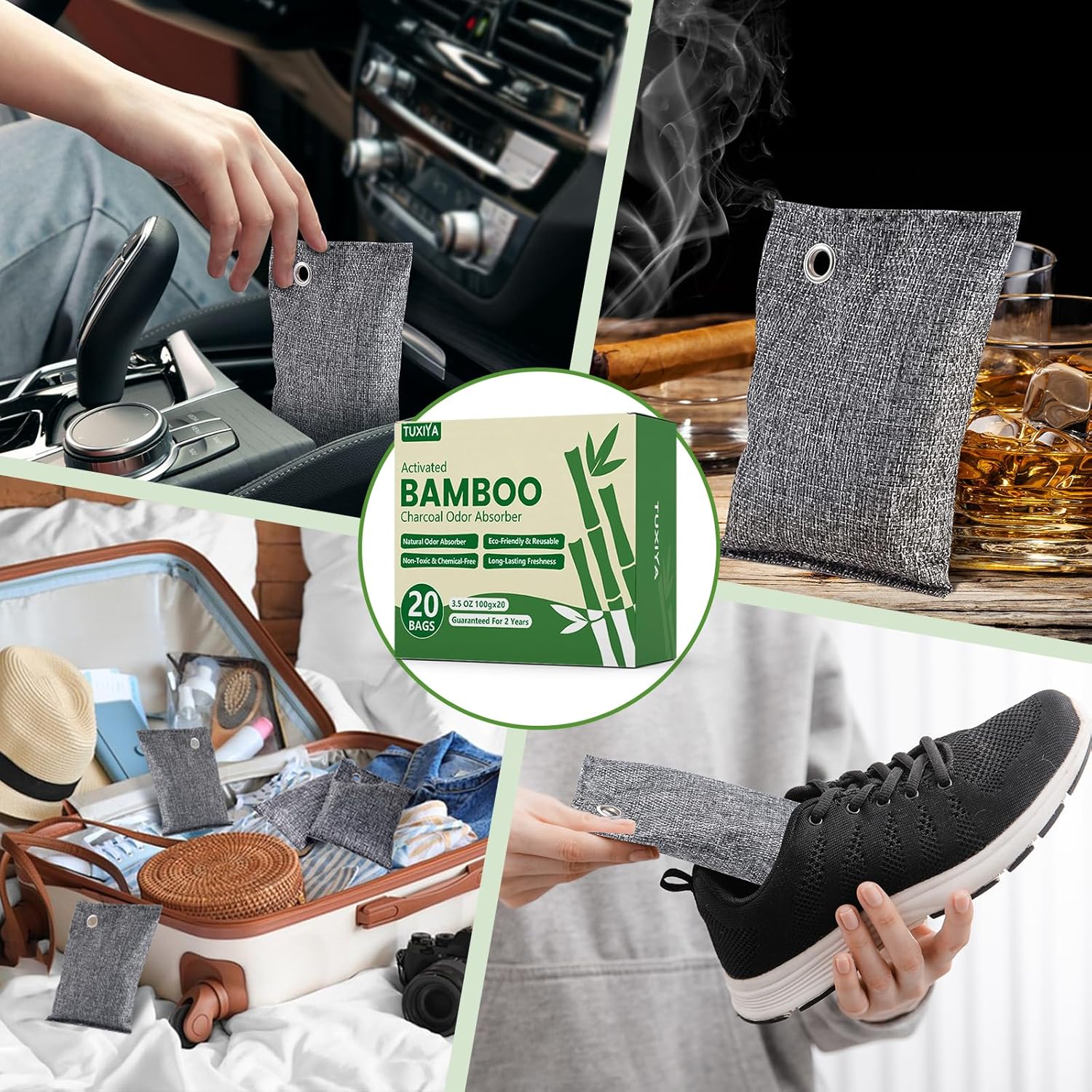 • 【Activated Charcoal】:This set includes 20 charcoal deodorizer bags (100g each) with hooks, designed to naturally absorb odors and moisture for a fresher environment.