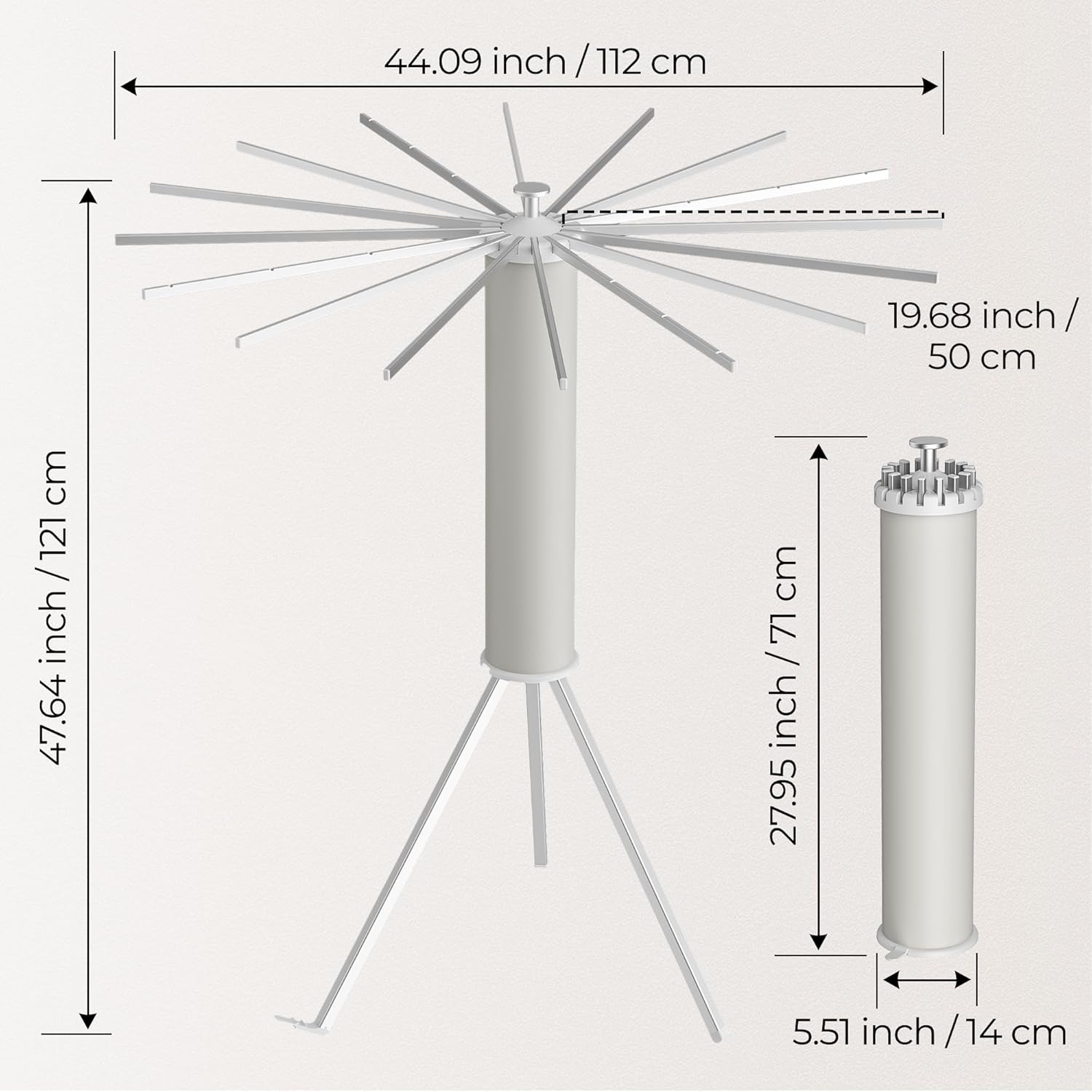 • 【Sturdy and Durable】The clothes drying rack has 16 rods and a strong tripod structure that can support up to 45 pounds of clothing; Depending on your needs for space and usage needs, you can increase the number of arms you require.The folding drying rack's unique tripod design allows it to remain perfectly stable in a limited area.