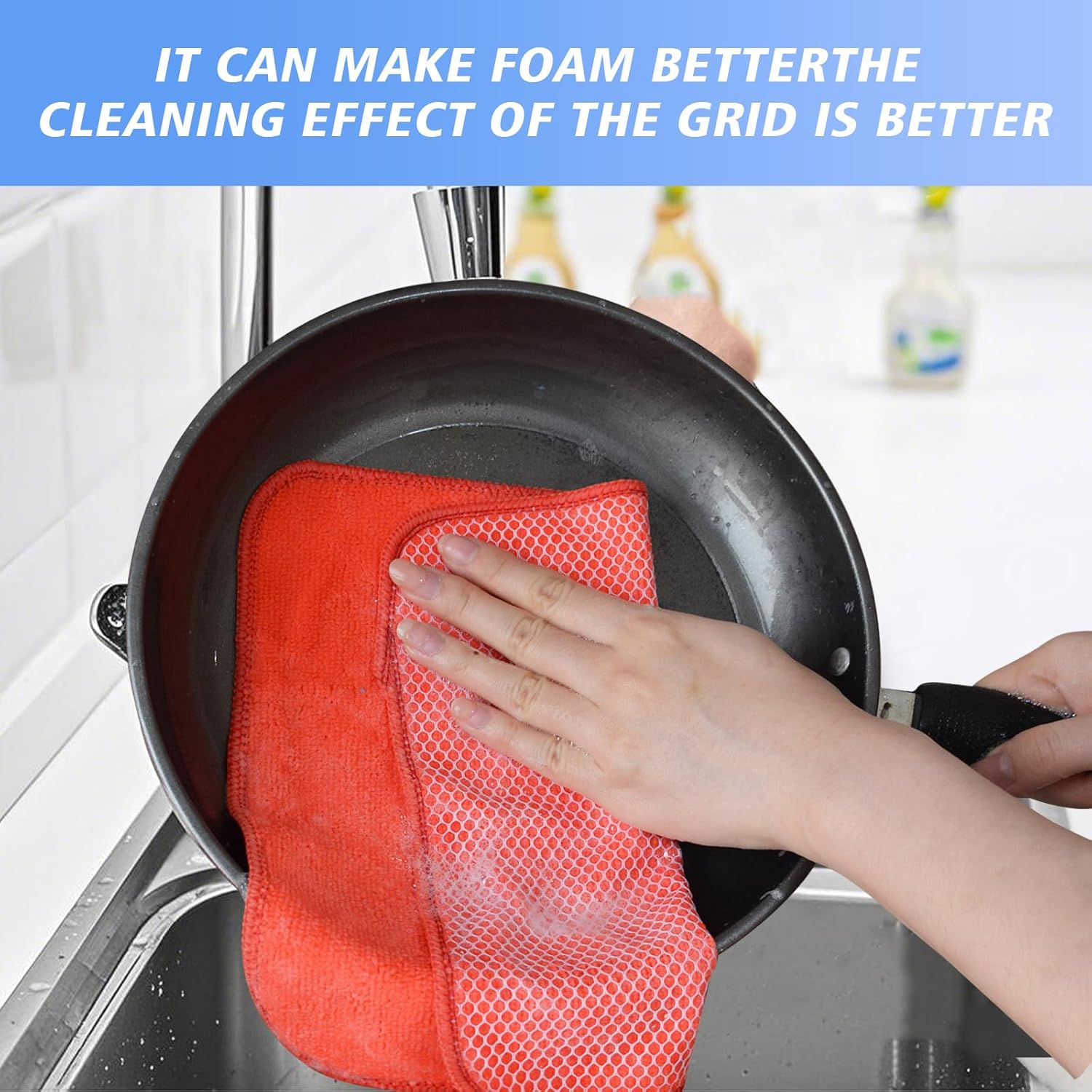 • DISH RAGS FOR KITCHEN CLEANING WITH POLY SCOUR SCRUBBING SIDE: One side is microfiber and the other side is mesh. The microfiber side works well at getting finger spots off the stainless steel appliances and the glass front of fridge or stove, microwave; the scrubby side is good for cleaning stuck on food without having to grab your scraper and does not scratch delicate surfaces either
