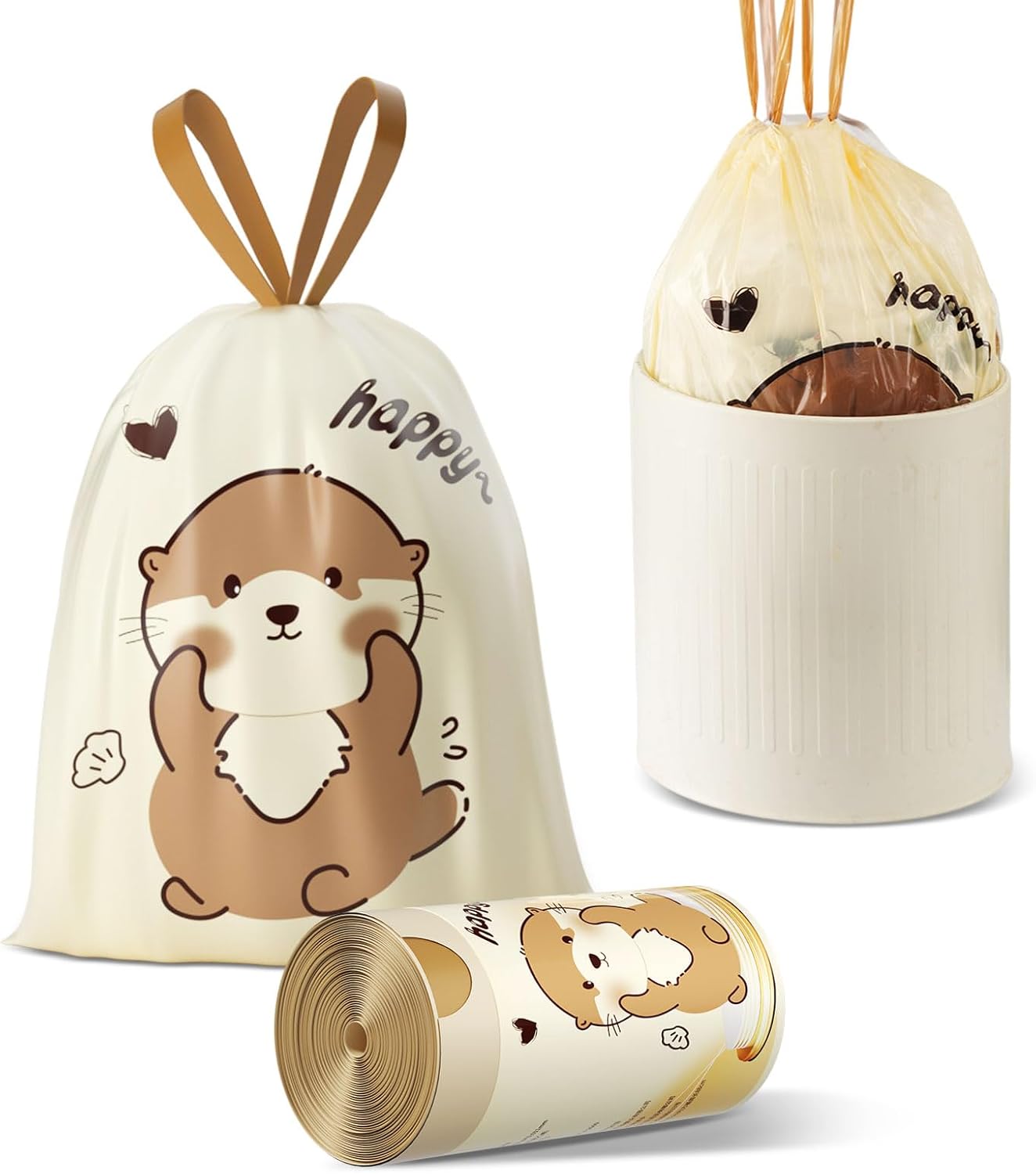 VOK 4 Gallon Trash Bags with Otters Printed, Drawstring Small Garbage Bags, Tear-Resistant & Odor-Control Bathroom/Kitchen Trash Can Liners, Bathroom Trash Bags with Secure Tie, 55 Counts