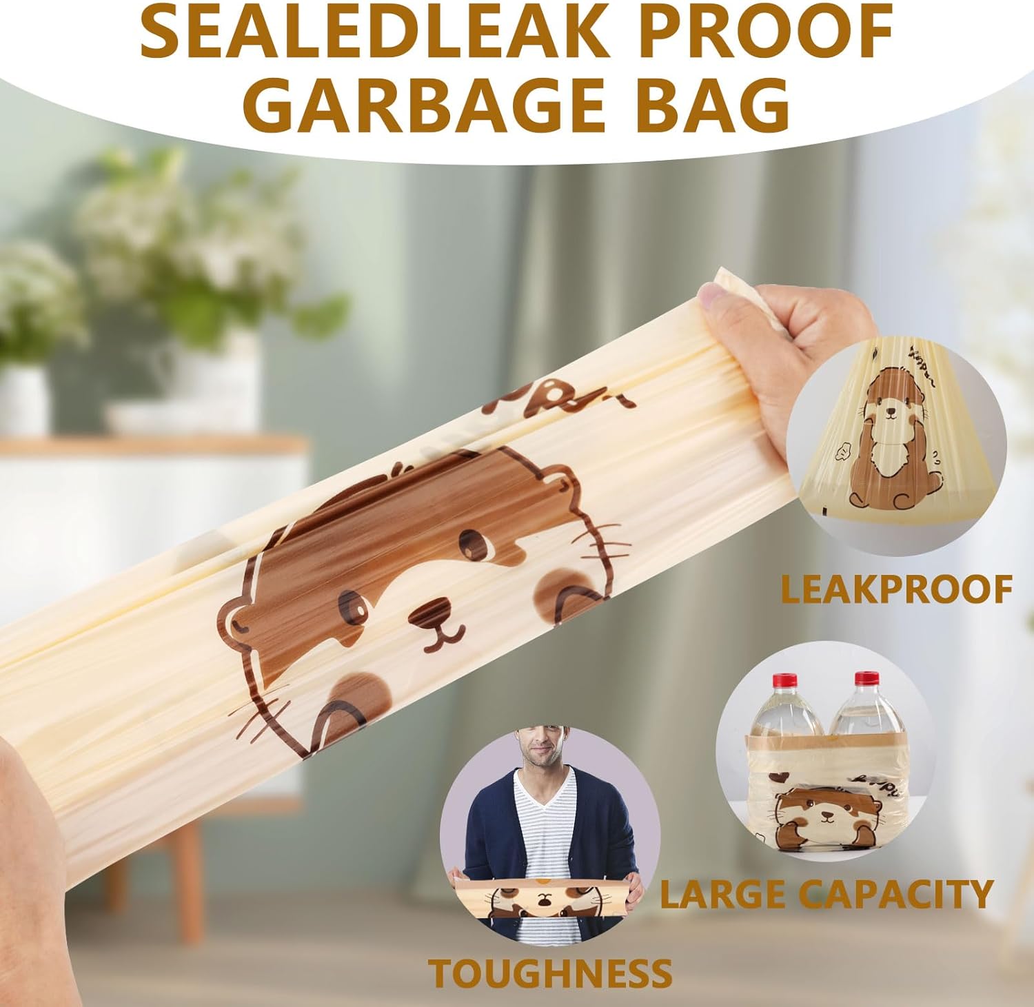 • 🦦【Playful Otters Print for a Happy Home】Brighten your daily routine with 4 gallon trash bags featuring adorable otters! Unlike plain small garbage bags , these decorative trash can bags add a whimsical touch to bathrooms, kitchens, or kids’ rooms—because beauty matters even in small spaces!