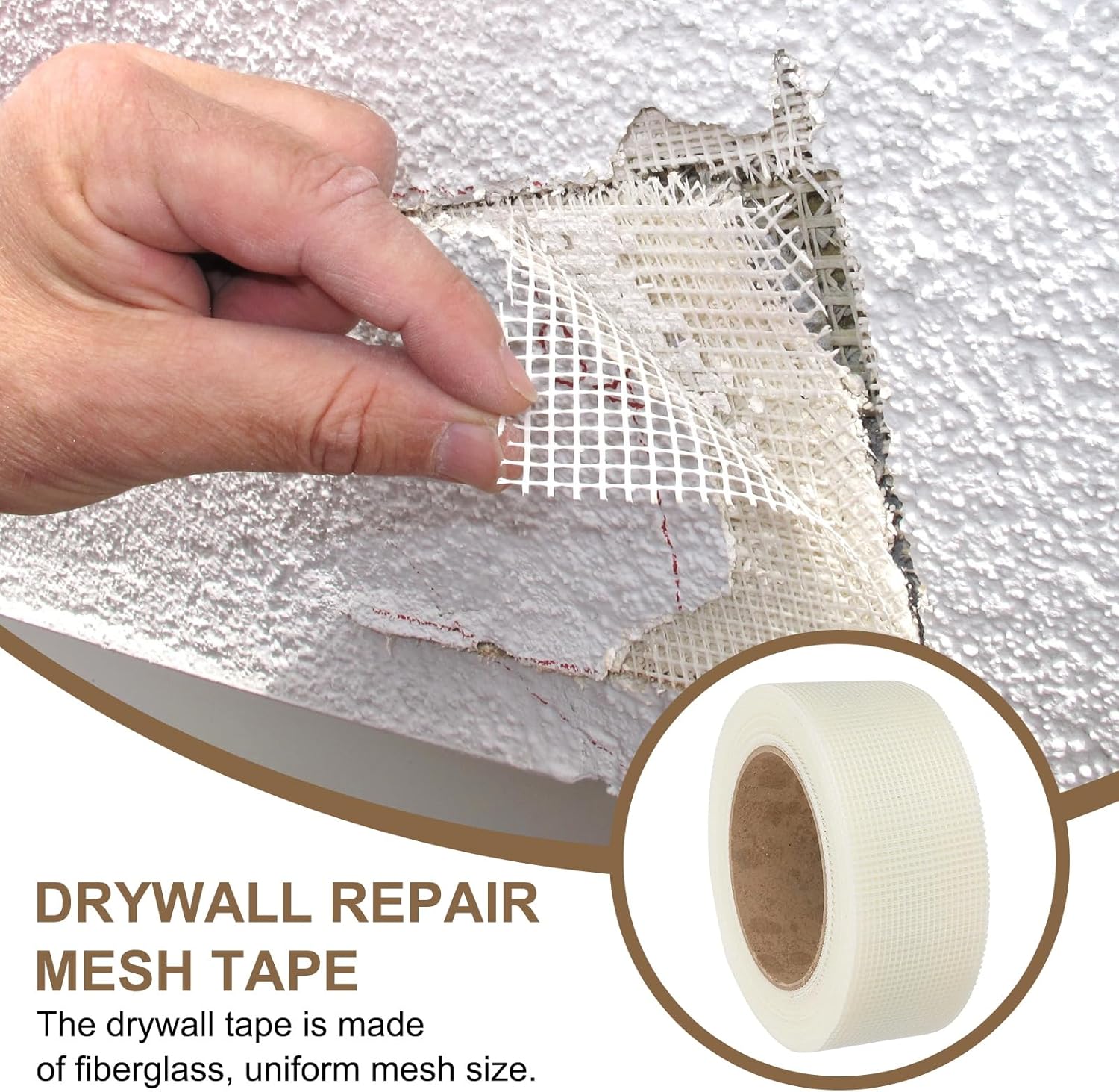 • Color: White; Hole Diameter: 12 Mesh; Total Size: 25 m x 5 cm / 82.02 Ft x 1.97 inch (LxW); Packing List: 1 Pcs x Drywall Repair Mesh Tape