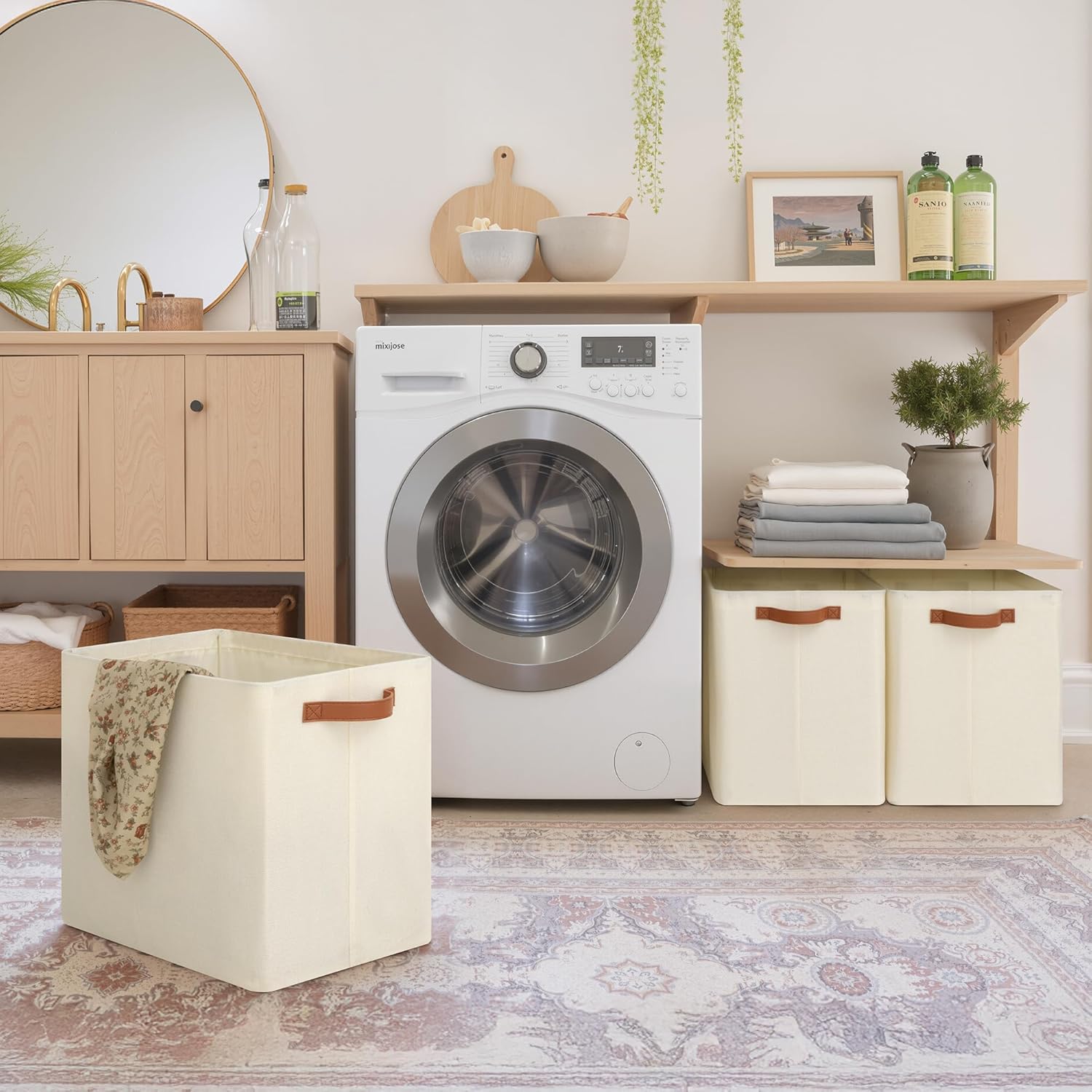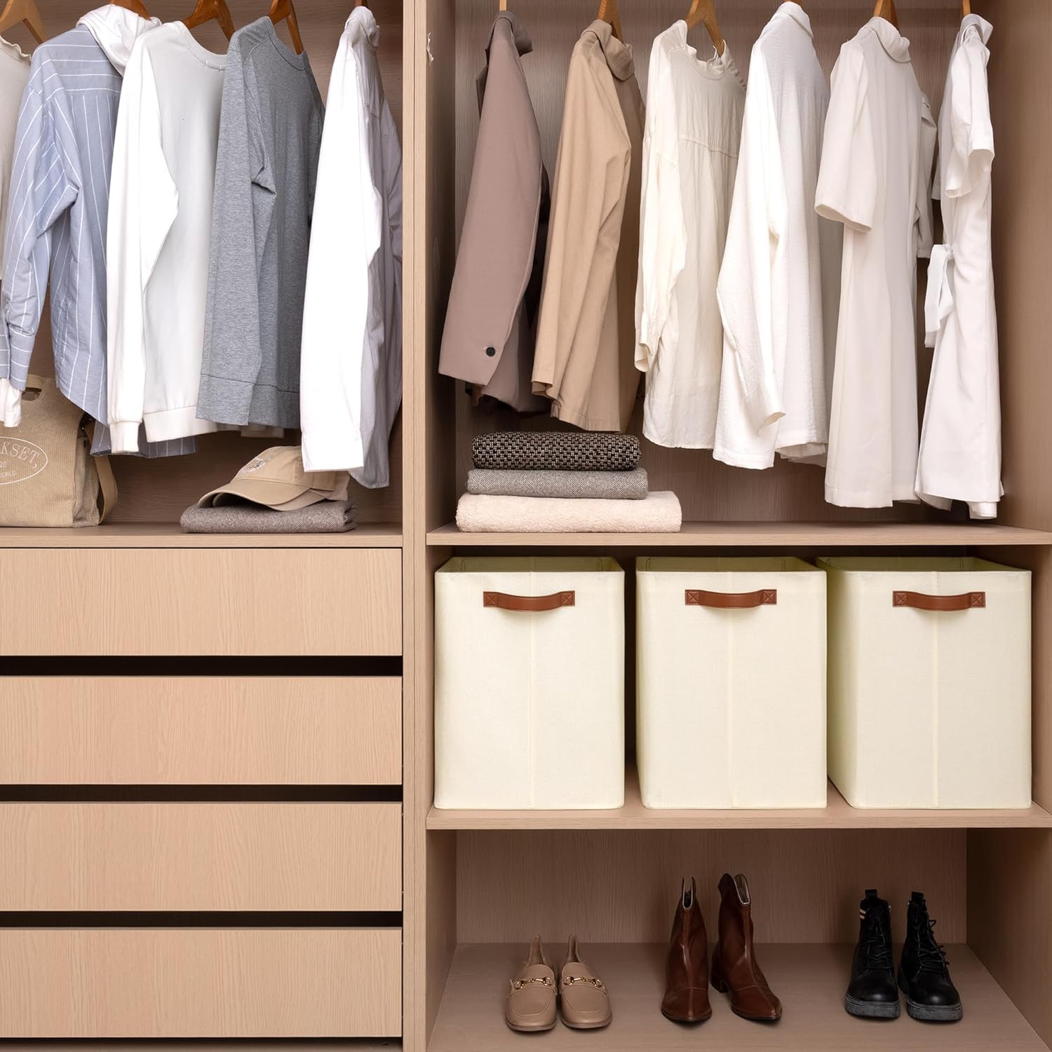 • PU Leather Handles: Designed with 2 durable sewn-in PU leather handles, this bin allows for easy lifting or pulling from shelves, closets, or cabinets—making everyday access effortless and stylish.