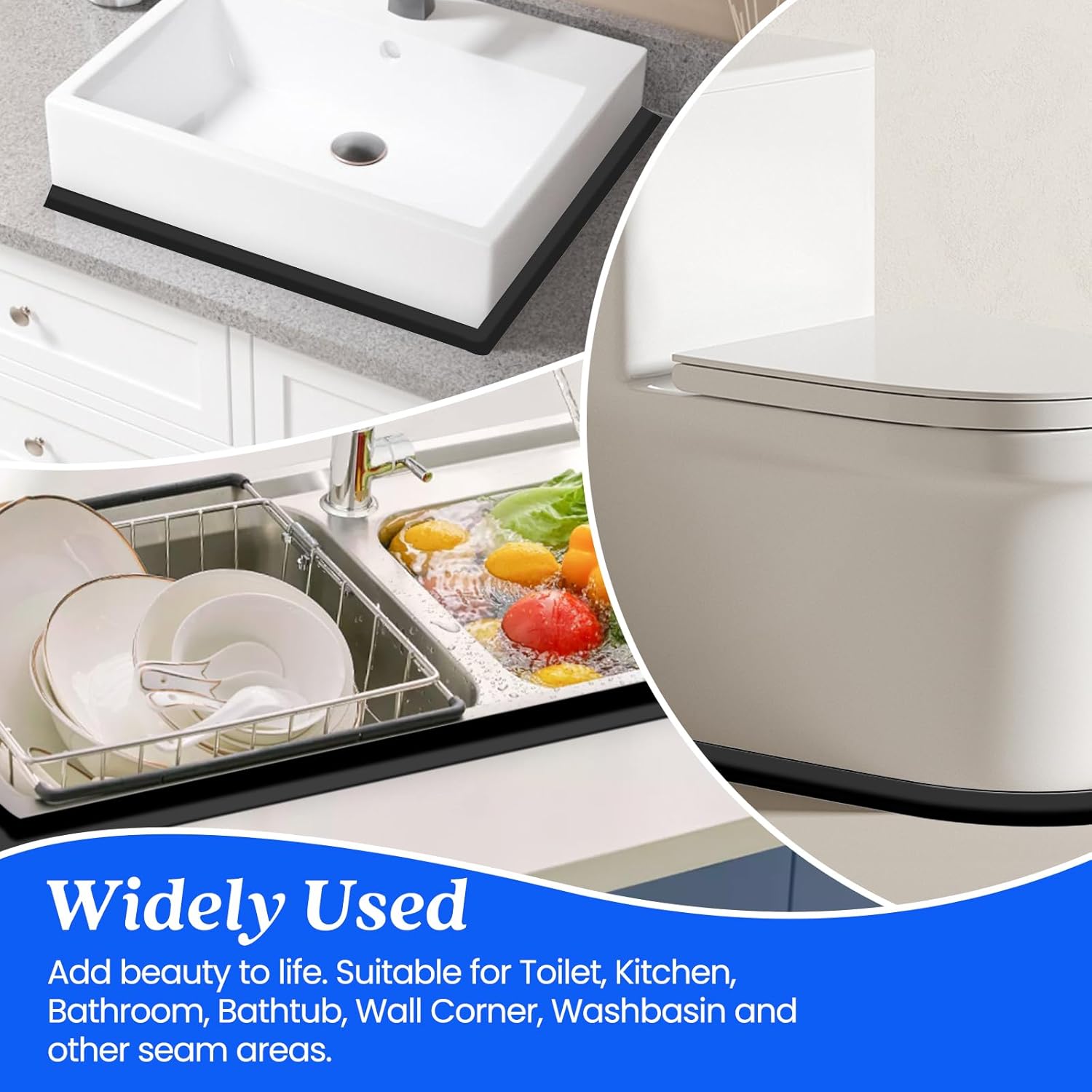 • ✅Wide Applications: Self-adhesive sealant tape is widely used for sealing joints in toilets, bathroom, kitchen, sinks, pools, bathtubs, gas stoves and walls. The shower seal strip can prevent them from blackening and keep your kitchen and bathroom clean and tidy.