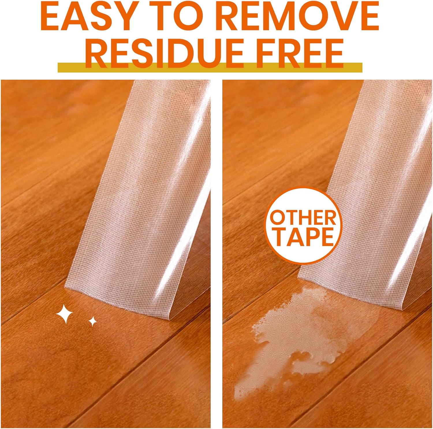 • INVISIBLE & RESIDUE-FREE: Ultra-thin 0.01" clear tape is hidden completely under rugs, with no visible strips or color mismatch. It could remove cleanly without residue from floors and carpets.