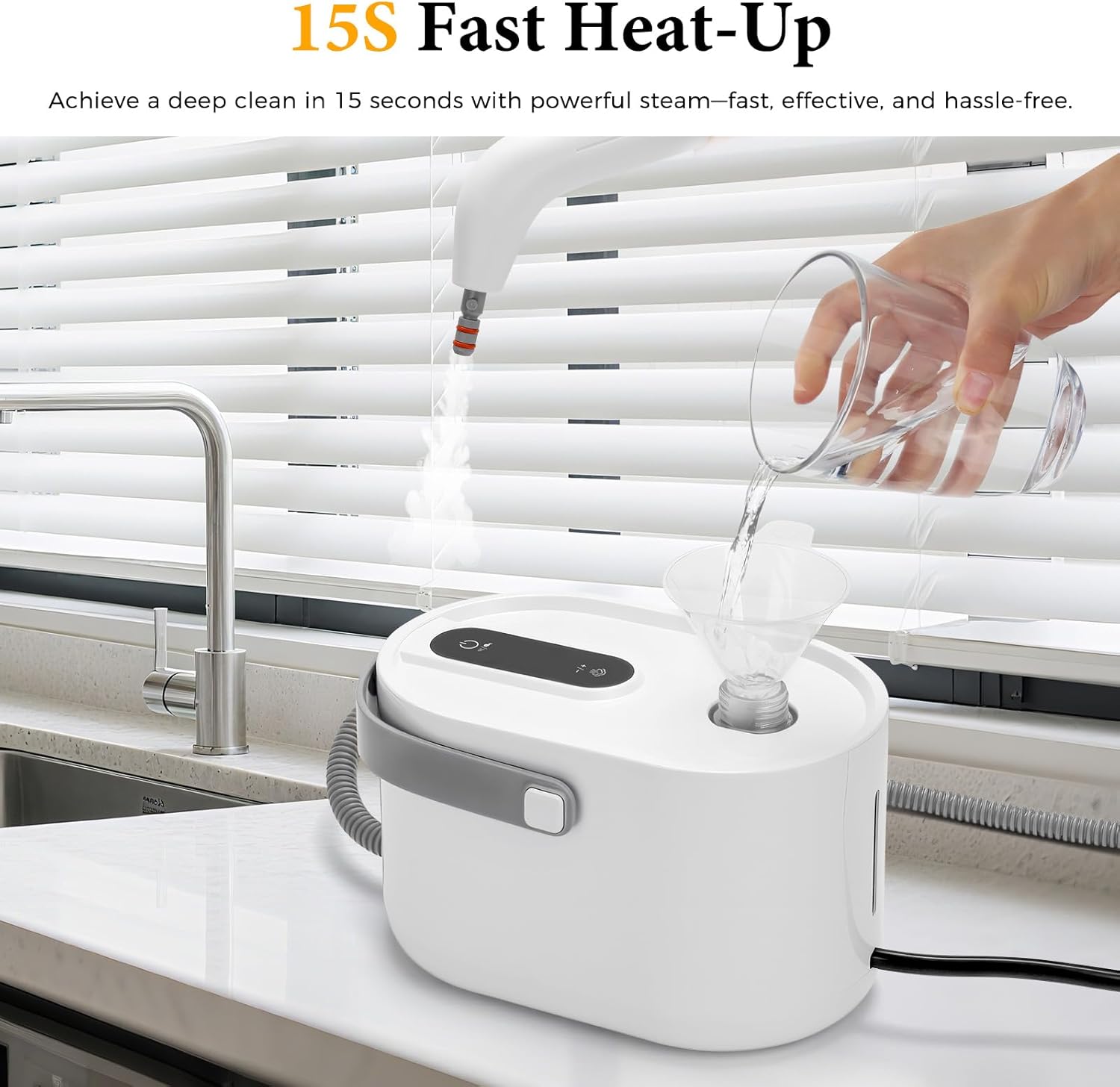 • Compact & Portable Design: This handheld steam cleaner for home is lightweight, stylish, and easy to use—perfect for effortlessly cleaning tight spaces, corners, and hard-to-reach areas