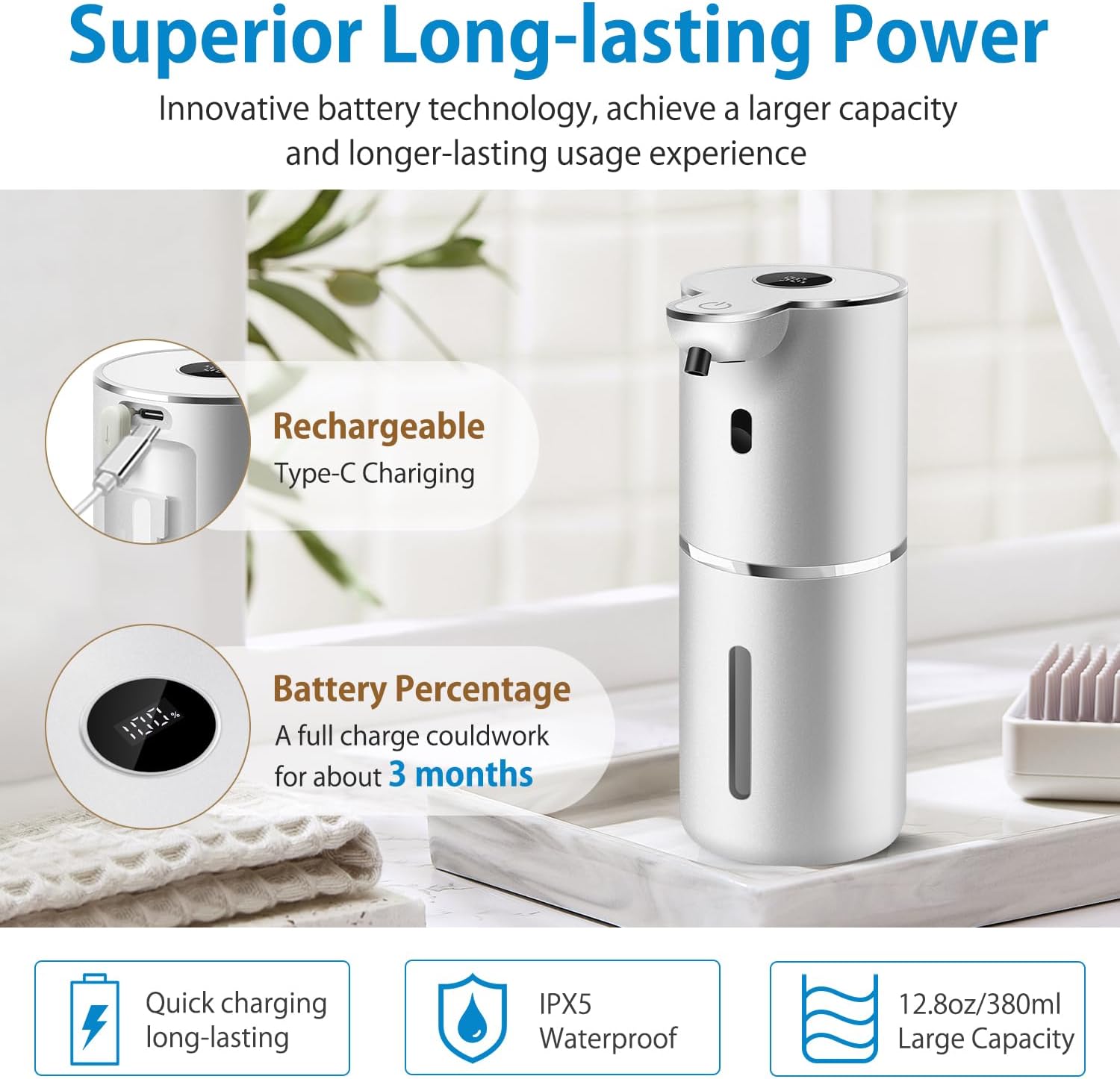 • 【6 Levels of Foam Dispensed】We understand that everyone has different need for soap lather. With our user-friendly design, you can effortlessly adjust the foaming level to suit your needs. By pressing the power button, choose different soap level. Not only does this feature cater to different need, but it also helps prevent soap waste, ensuring an efficient and satisfying experience