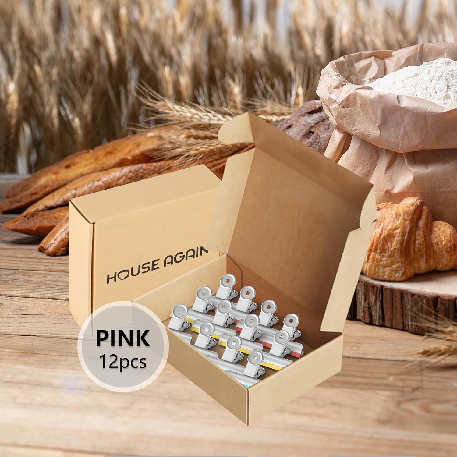 HOUSE AGAIN 12 Pack Stainless Steel Chip Bag Clips Covered with Silicone NO More Sharp Edges, Bulldog Clips for Food Bags Air Tight Seal, Heavy Duty Binder Paper Clips for Kitchen and Office, 3 Inches