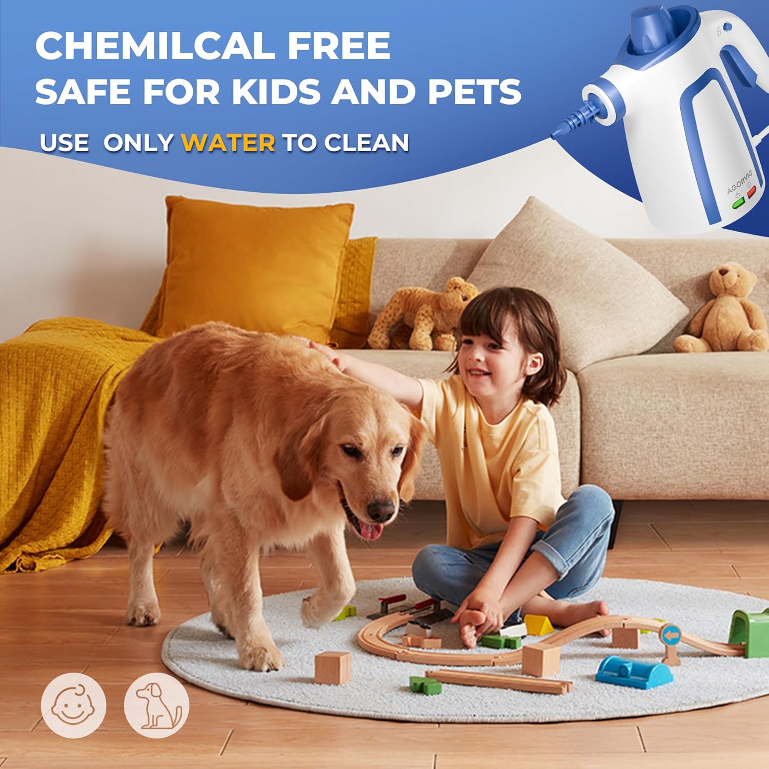 • 𝐂𝐡𝐞𝐦𝐢𝐜𝐚𝐥-𝐅𝐫𝐞𝐞 & 𝐒𝐚𝐟𝐞 - As a eco-friendly steamer cleaner, it uses only water to clean toys, high chairs, and pet beds, perfect for homes with children and pets.