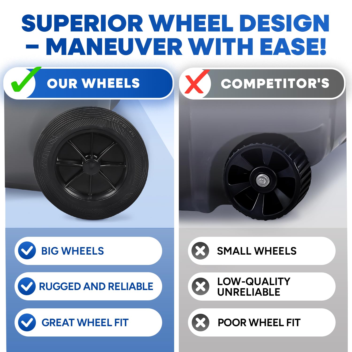 • Snap-Lock Mechanism: Designed with a snap-lock feature, this outside trash can with wheels ensures added security, preventing unauthorized access to your waste.