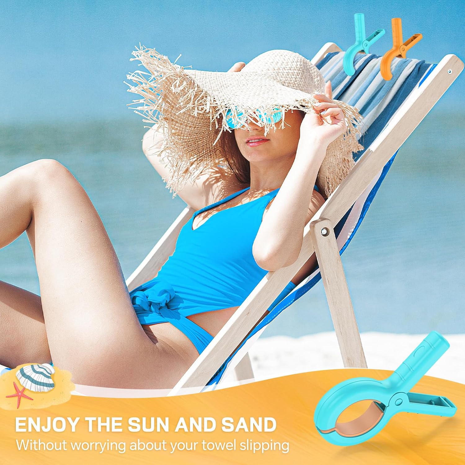 • 【Multi-purpose clips】: This beach towel clip has the advantages of long life, bright colors and grabbing power, so it can be used in a variety of scenarios, not only suitable for the beach but also handy for camping, tablecloth clipping, and hanging clothes. Whether you're on a cruise, by the pool, or having an outdoor picnic, our beach chair towel clips are practical tools for various occasions.Plastic clothespins are sturdy and do a great job holding towel, clothes, blankets to the clothesline, even on windy days.