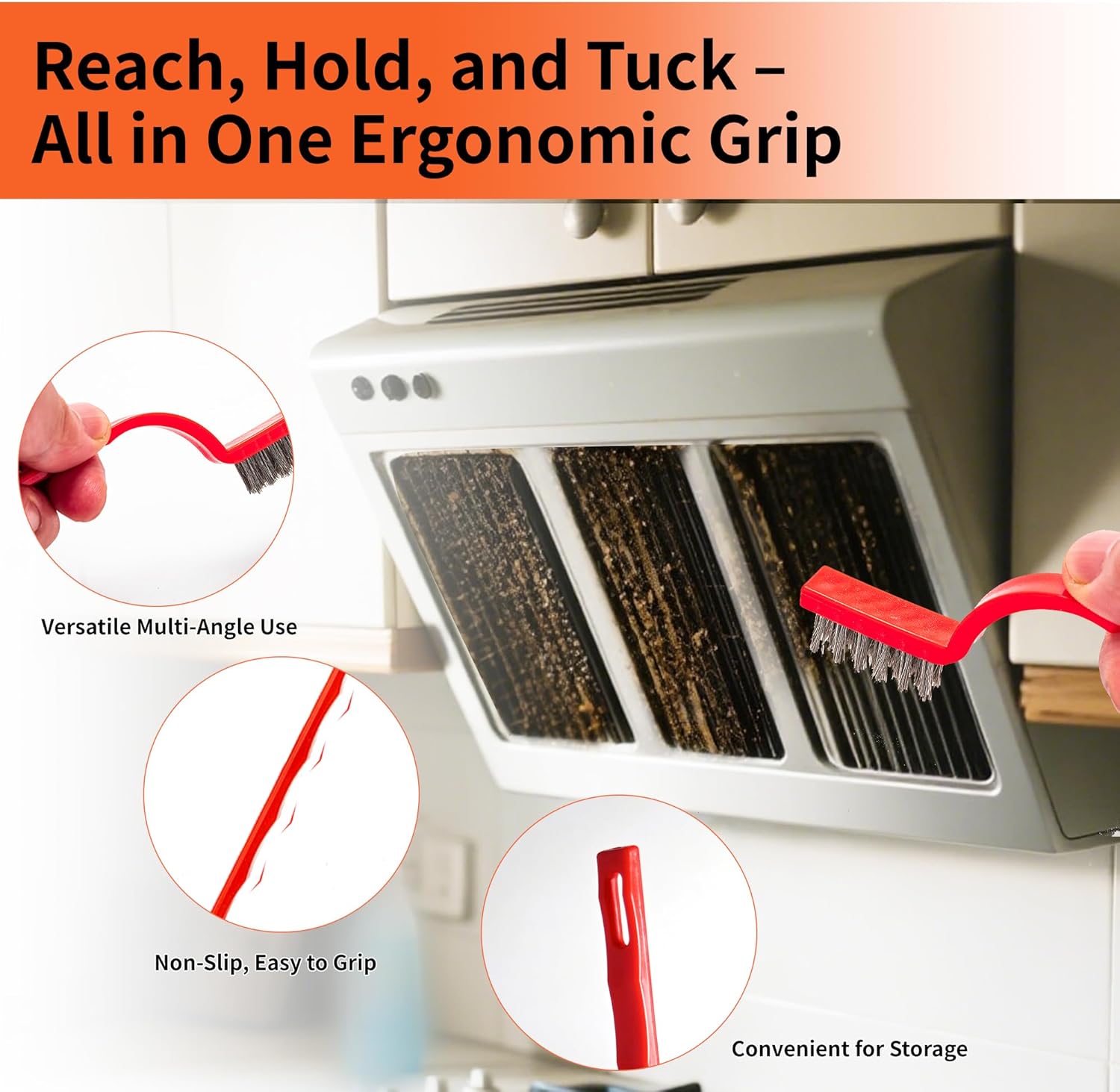 • 【Ergonomic Design for Comfort and Control】 Both our plastic razor blade scraper and wire brushes feature ergonomic designs that enhance usability. The plastic scraper tool has anti-slip handles for a comfortable grip, making cleaning tasks easier. Meanwhile, the small wire brushes come with soft rubber-covered handles and water chestnut grips for added comfort. Plus, their perforated ends make them easy to organize and store.