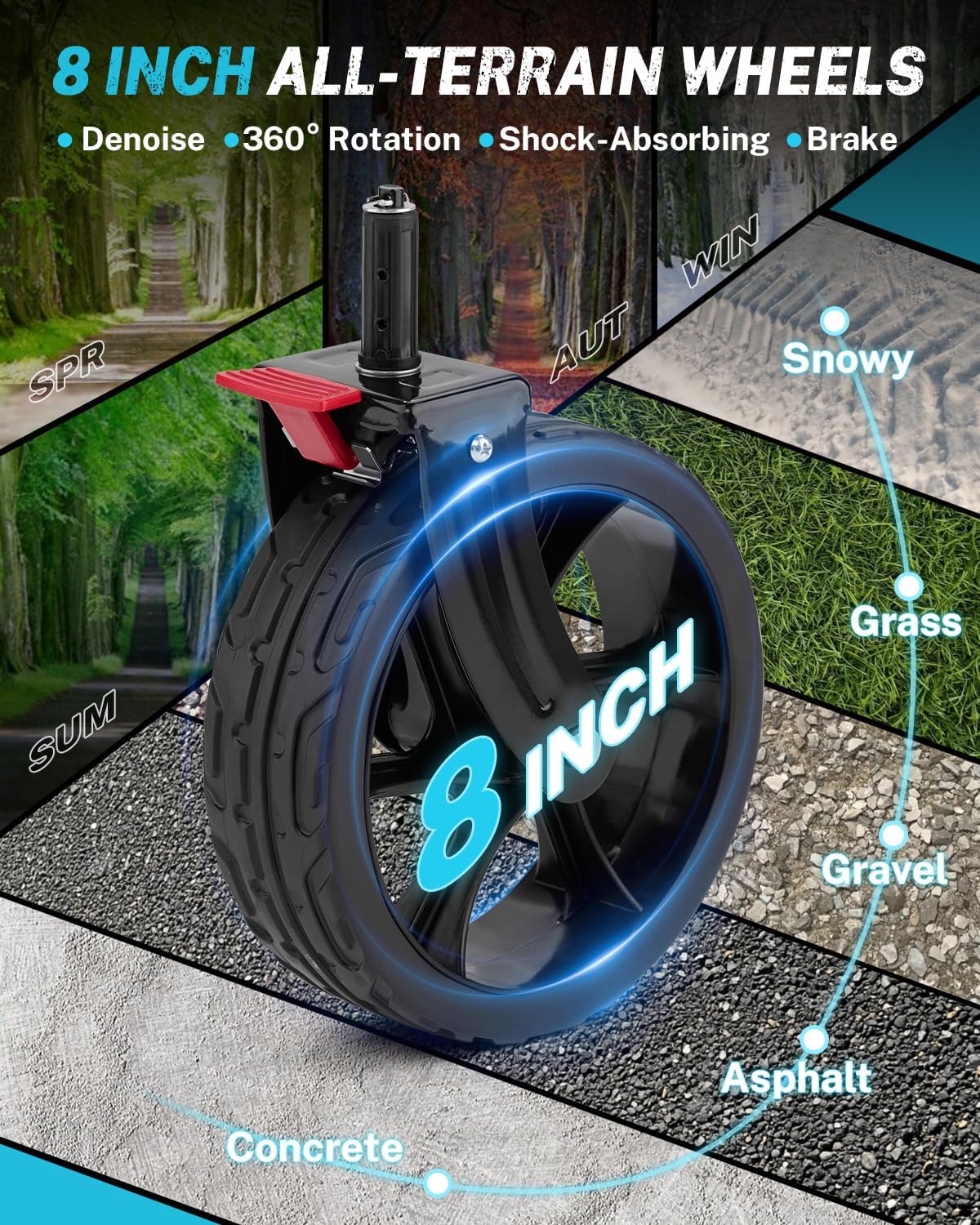 • 【8"H All-Terrain Wheels with Brakes】Built for off-road adventures, this heavy-duty wagon cart features 360°all-terrain wheels and brakes to thorough grass, gravel, mud, and steep slopes with ease