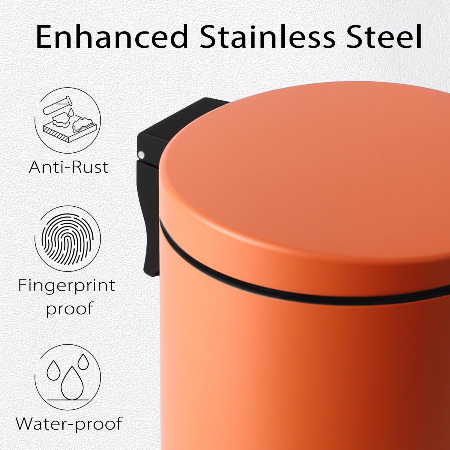 • Strong Steel Pedal: The pedal of the trash can is engineered to last over 150,000 steps — that's more than 20 steps a day for 20 year
