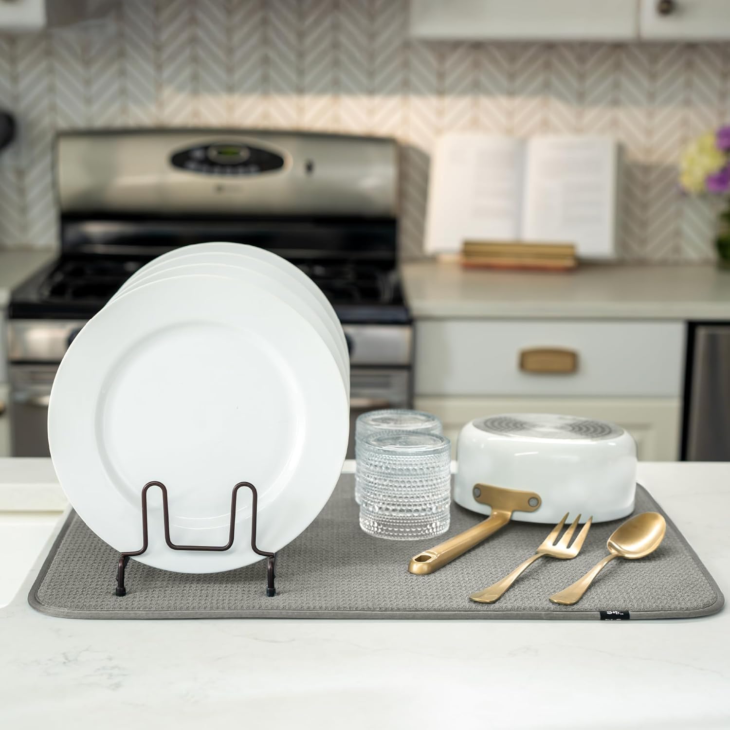 • Dish drying mats for kitchen counter are reusable, machine washable, and easy to store for kitchen organization; durable construction will not chip or break like a stone dish drying mat for kitchen