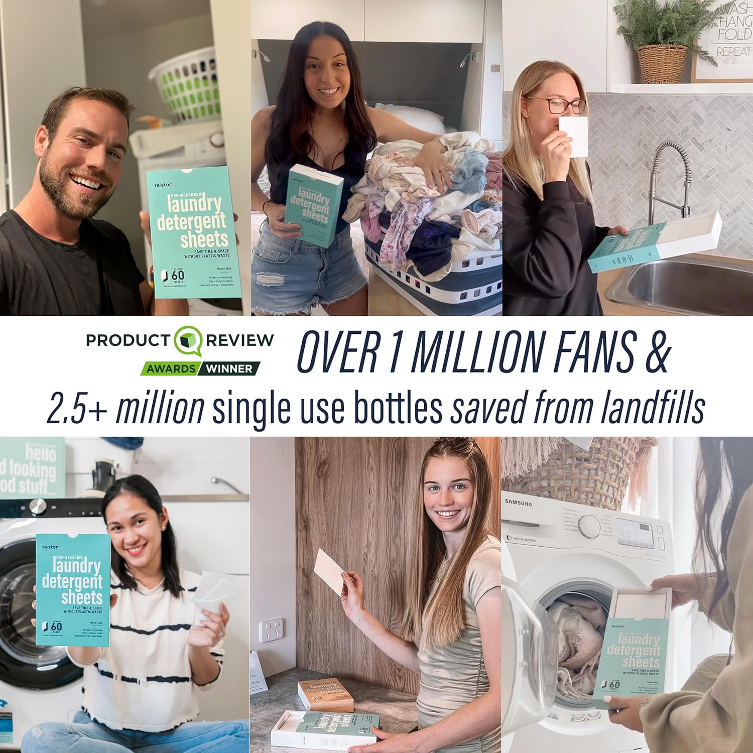 • PROVEN TO FIGHT STAINS BETTER THAN OTHER BRANDS: Enhance your laundry routine with Restor Laundry Detergent Sheets that have been independently tested to remove common household stains better than the leading Laundry Sheet brand. Each ultra-concentrated, dissolvable sheet tackles stains, odors, and buildup with 94% naturally derived ingredients, delivering a powerful clean, without compromise