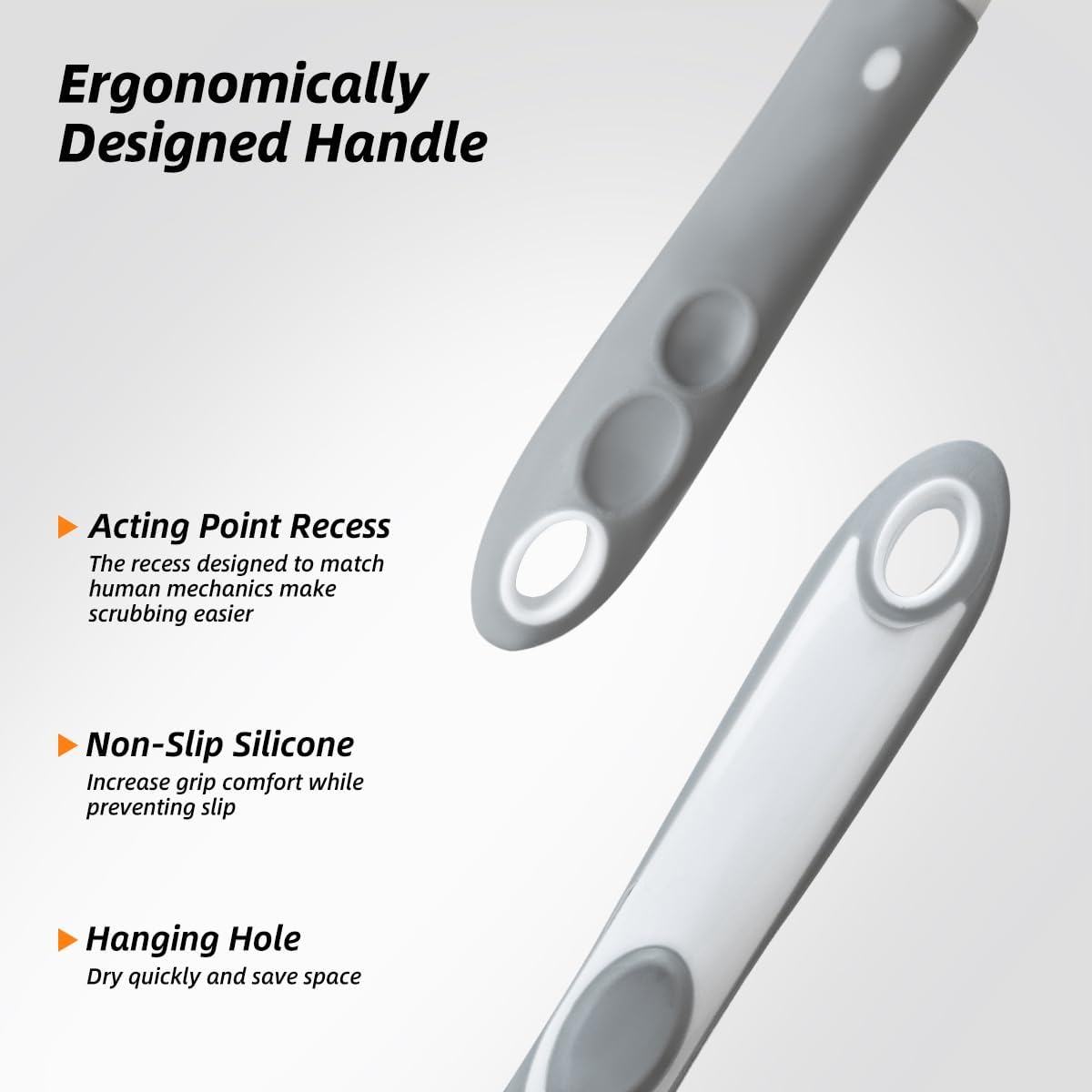 • 【Ergonomic Slippery-Proof Grip】Molded silicone handle with thumb rest design for increase grip strength, even if your hands are covered in soap. ideal bathroom scrub brush and grout cleaner brush