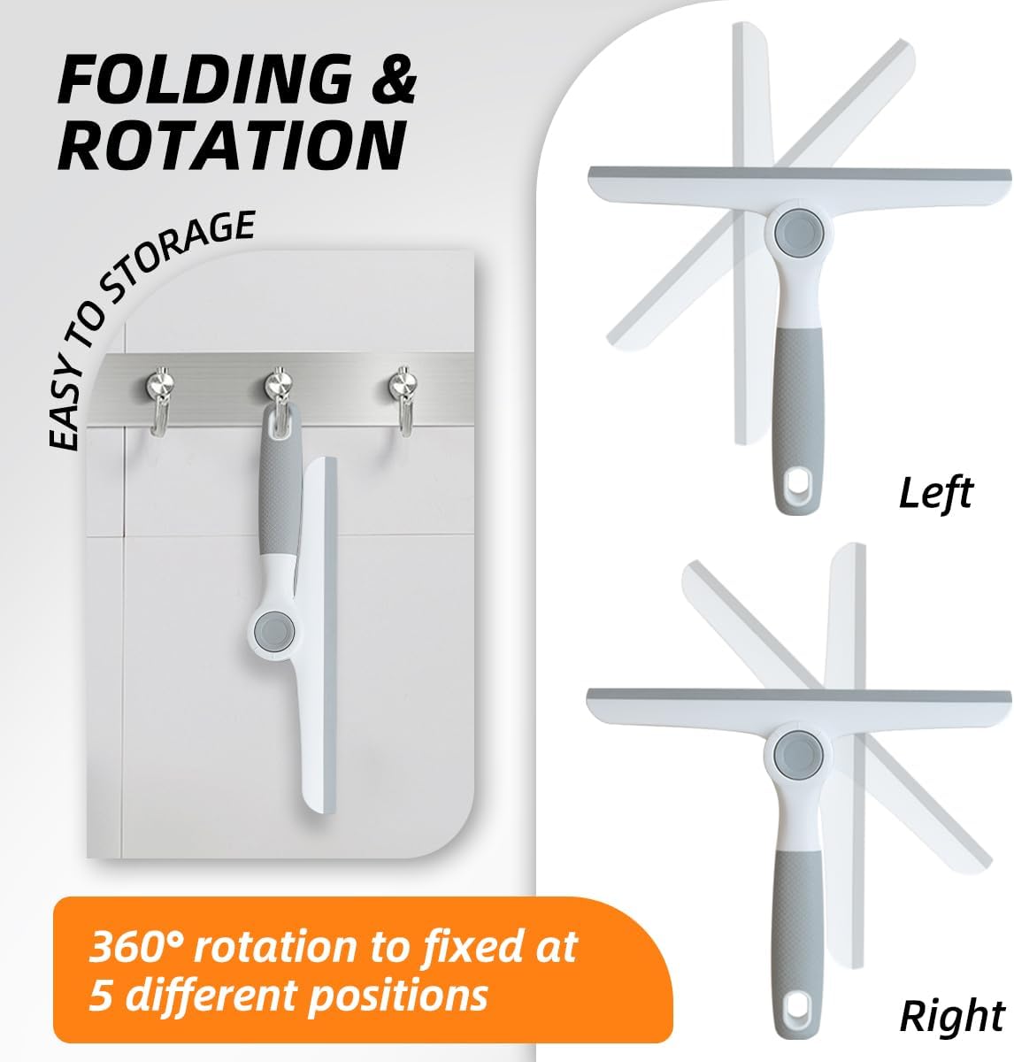 • 【360° Rotating Window Squeegee】The head of shower squeegee for glass doors can be fixed at 5 different angles making cleaning easier, that can be folded for storage after cleaning. With this window squeegee for home, you can quickly tidy up the window, shower door, marble counter, foggy mirrors, car windshields etc.
