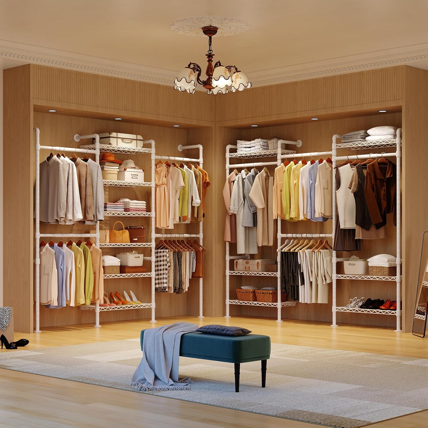 • Maximize Your Storage Space: The closet system in L- or 45° shapes is perfect for corners and tight spaces such as apartments and bedrooms, while straight lines are ideal for walk-in closets and clothing stores, helping you efficiently utilize every inch of your room.