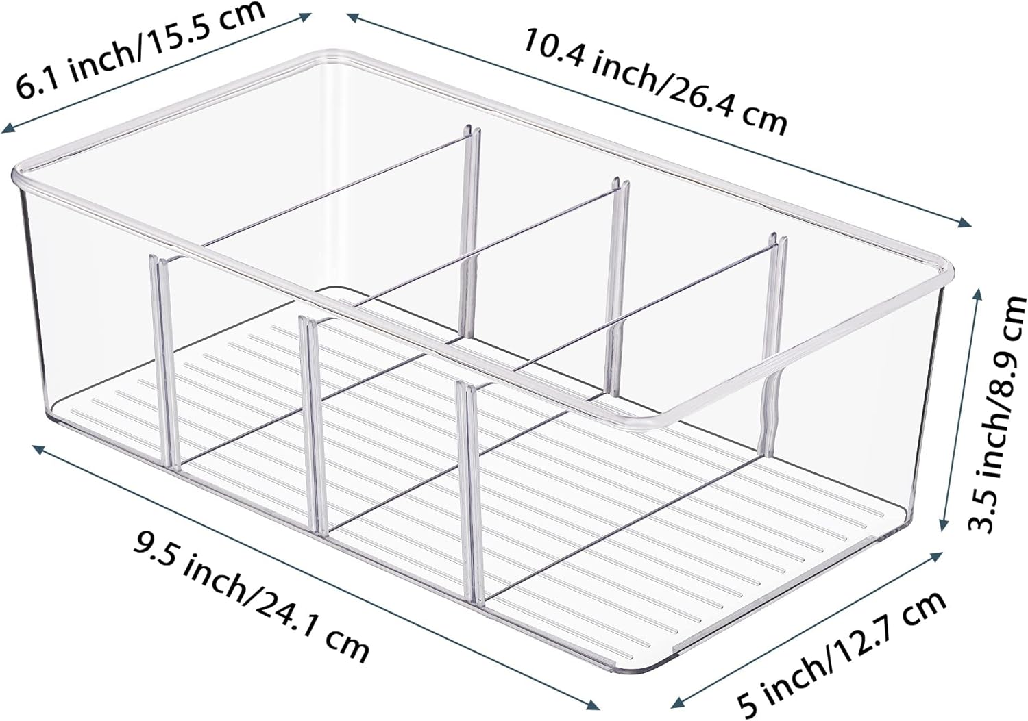 • Removable Dividers — There are 3 removable dividers in each food storage organizer bin, making it easy to separate and organize your items, you can quickly see and grab what you need.