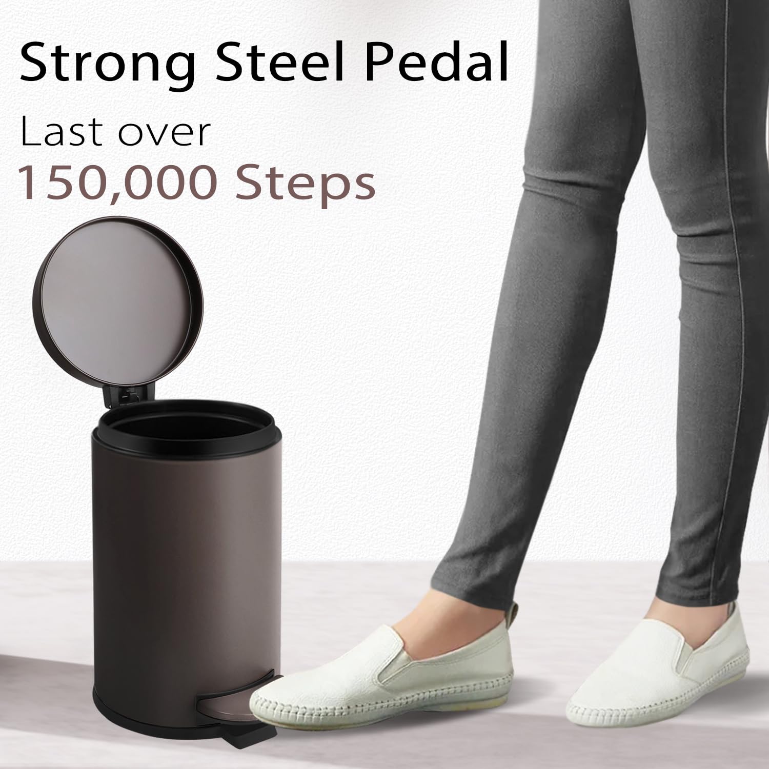 • Strong Steel Pedal: The pedal of the trash can is engineered to last over 150,000 steps — that's more than 20 steps a day for 20 year