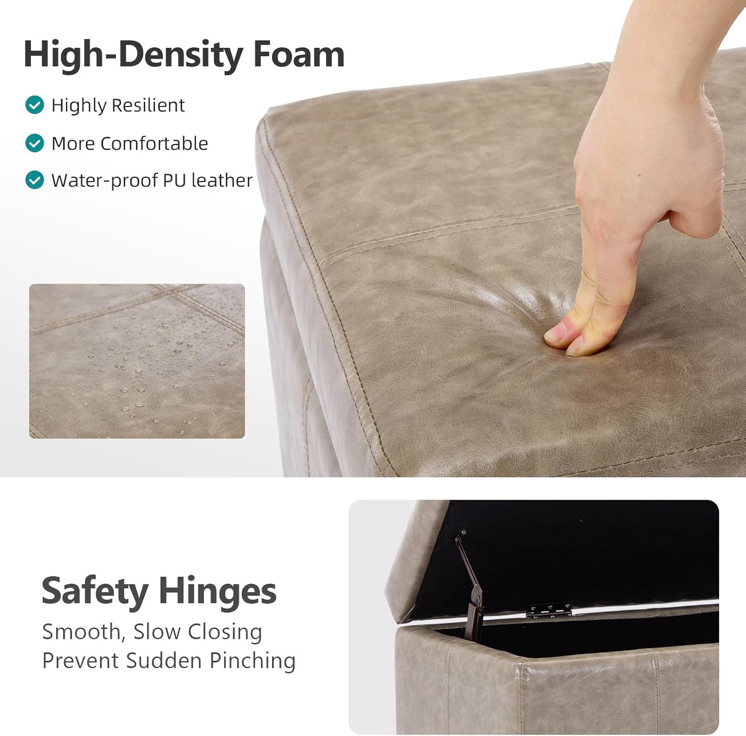• 【Premium Material】: Experience elegance and practicality with our storage ottoman. Made from premium faux leather, it resists water and stains for hassle-free cleaning. Its solid wood frame and moisture-resistant plastic legs offer durability, while the high-resilience foam adds comfort, making it perfect as a storage bench or a coffee table with storage