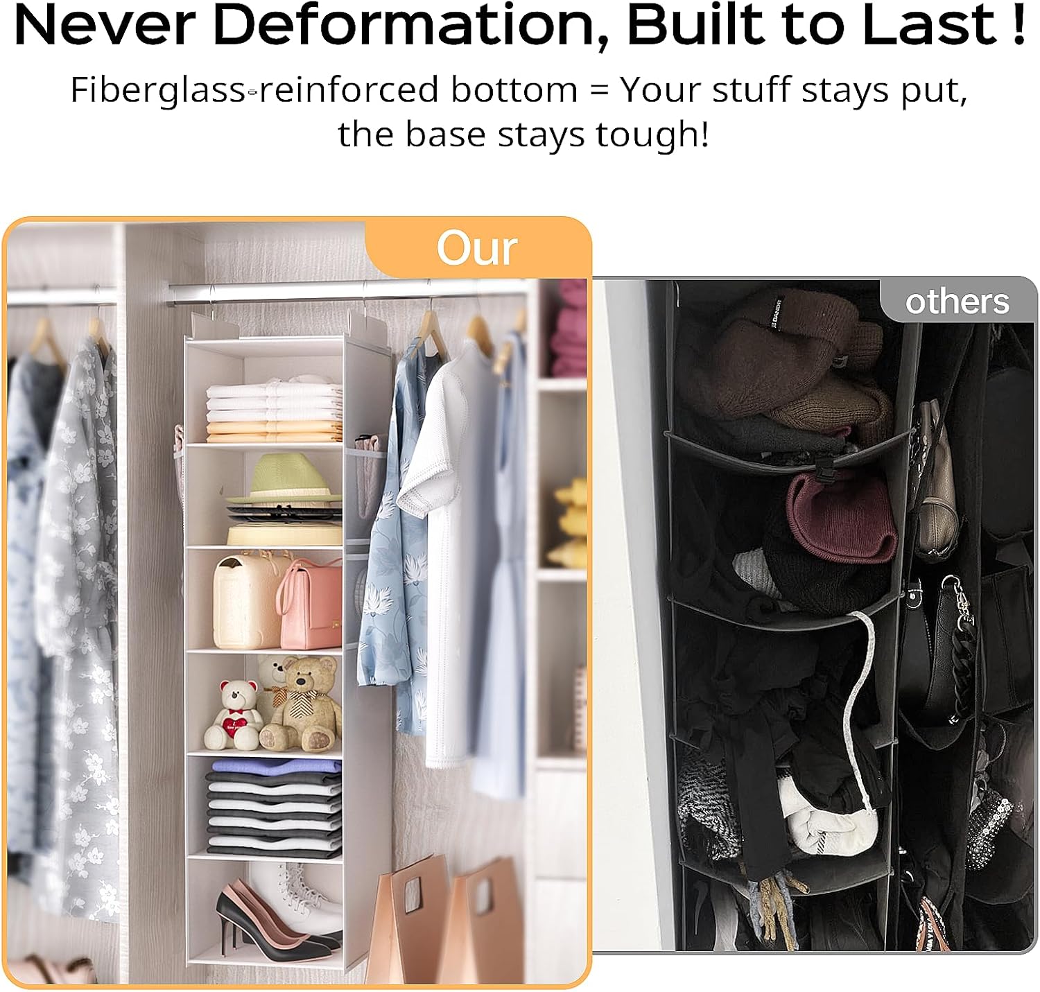 • ✅【Reinforced Structure – No Sagging, No Deformation】Built with fiberglass-reinforced bottoms and premium thick fabric, ensuring every shelf stays flat, strong, and stylish — even when fully loaded.
