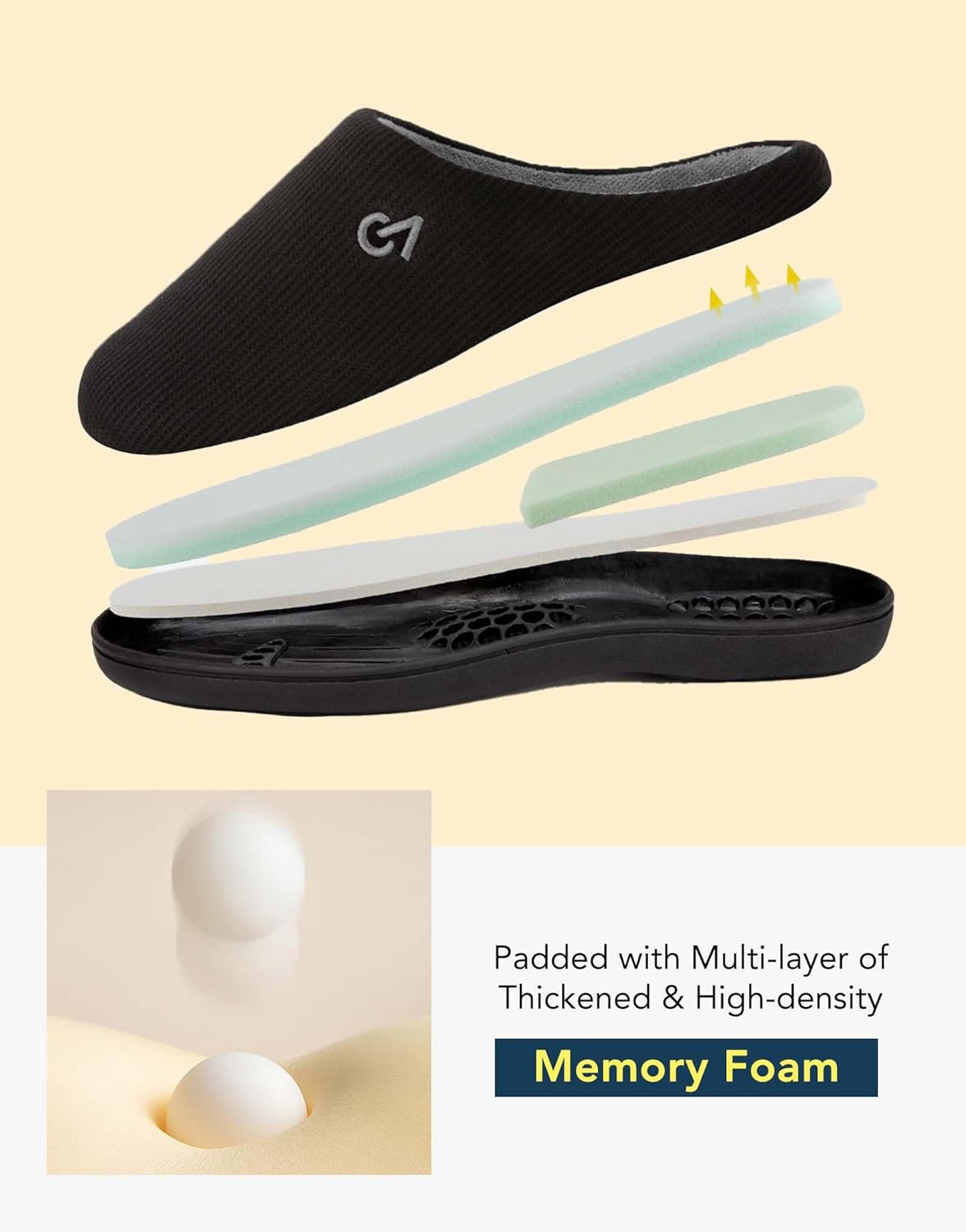 • Padded with high-density memory foam, multi-layered thickening foam and firm arch support design, these slippers really pamper your feet in cozy softness and keep each of your steps like walking on the pillows