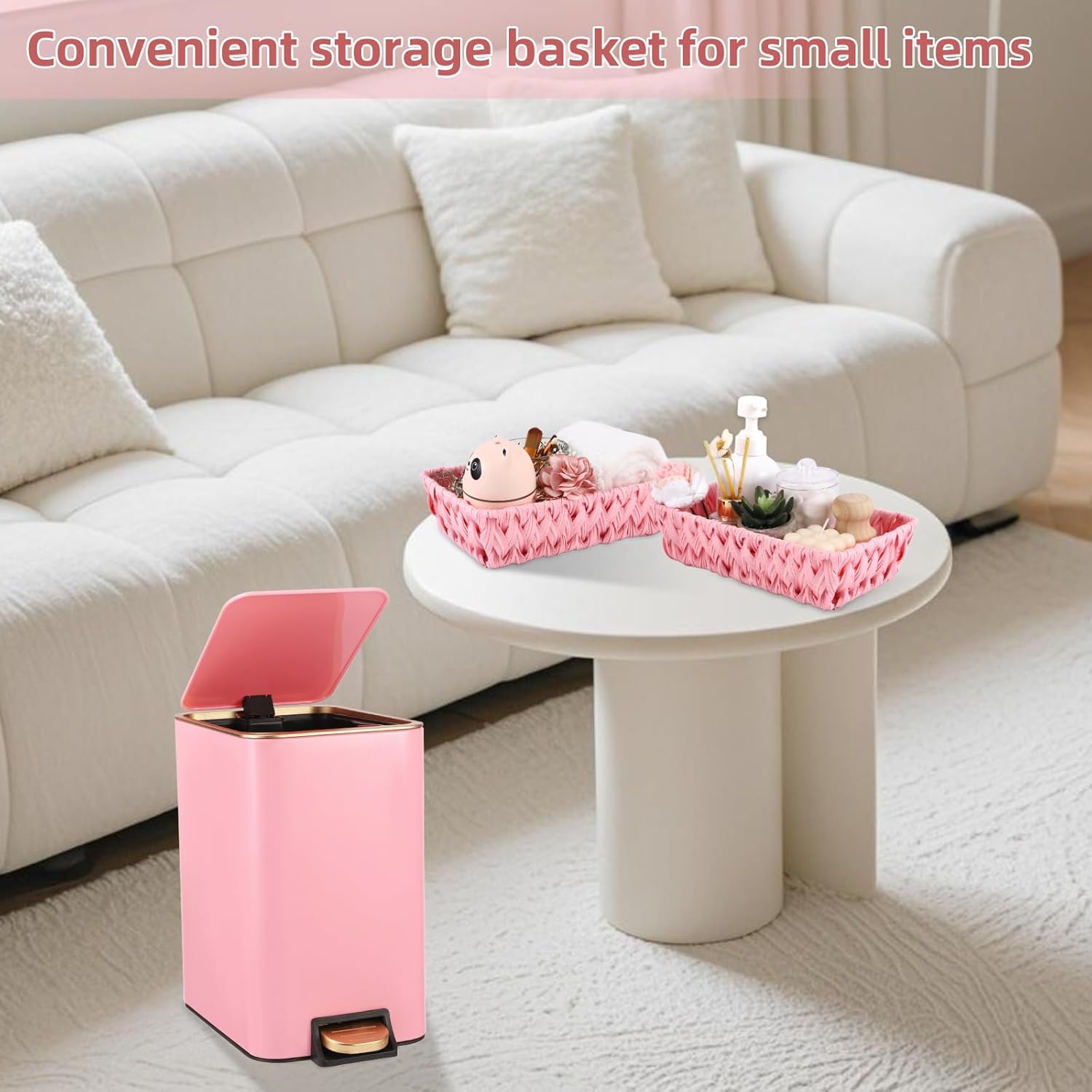 Small Bathroom Trash Can with Lid Soft Close, 1.8 Gallon Stainless Steel Garbage Can with Removable Inner Bucket,Wicker Storage Baskets,75Count Trash Bags, Slim Step Pedal Trash Bins
