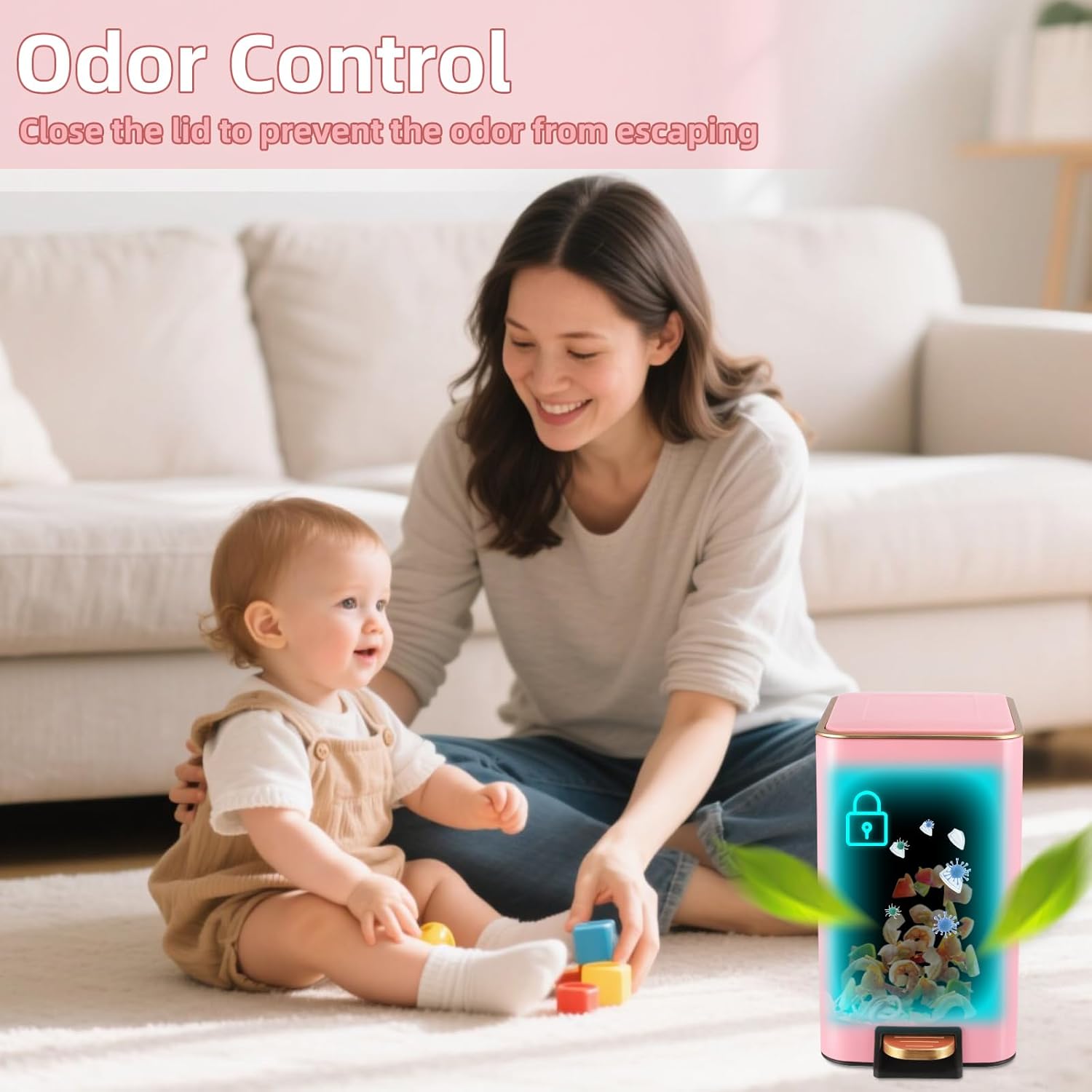• [Removable Inner Bucket]: The step trash can has a durable plastic liner bucket that can be easily lifted out for easy dumping of trash and rinsing quickly when needed;There is a carry handle on the back of the slim trash can to move it easier