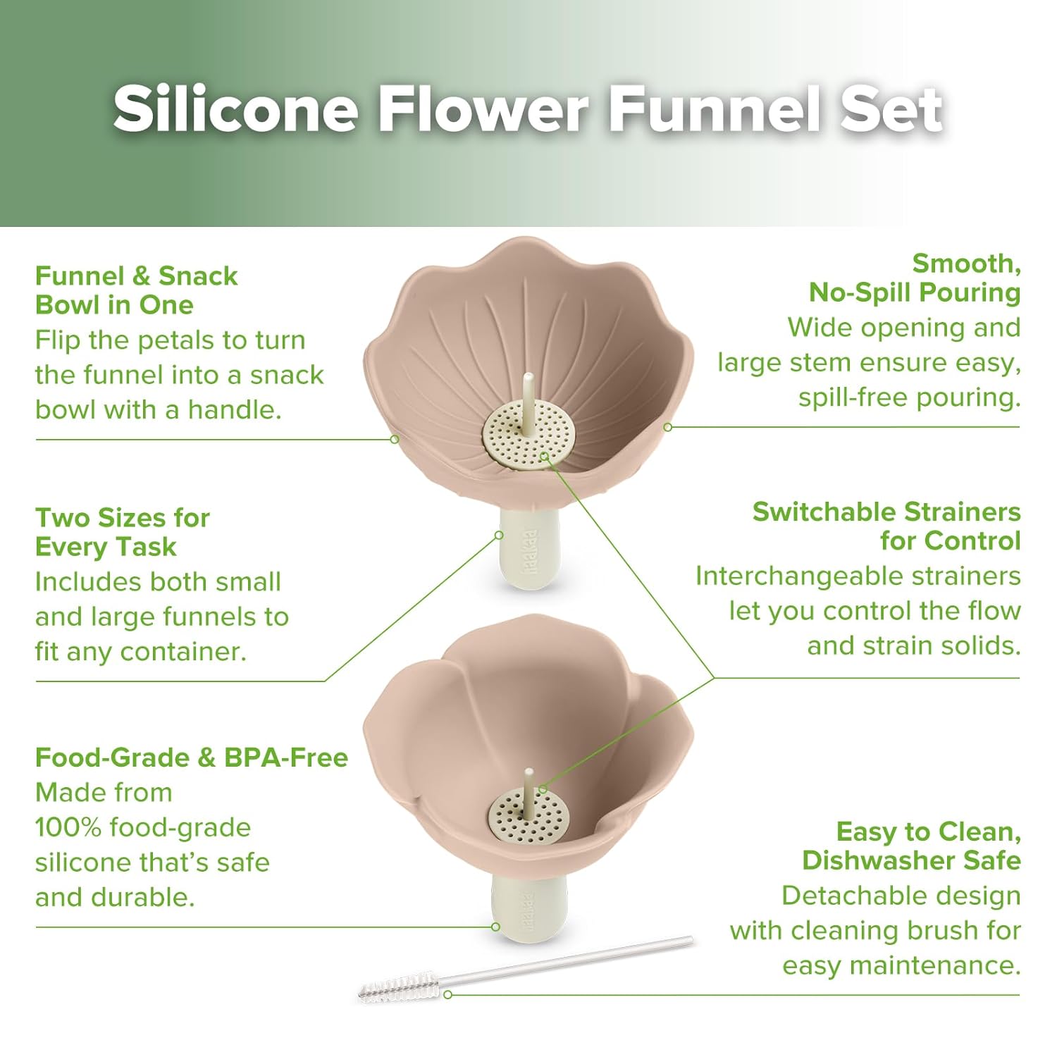 Haakaa Silicone Flower Funnel Set – Dual-Size Silicone Funnels for Kitchen Use, Small Funnels for Filling Bottles, Compatible with Haakaa Pouches
