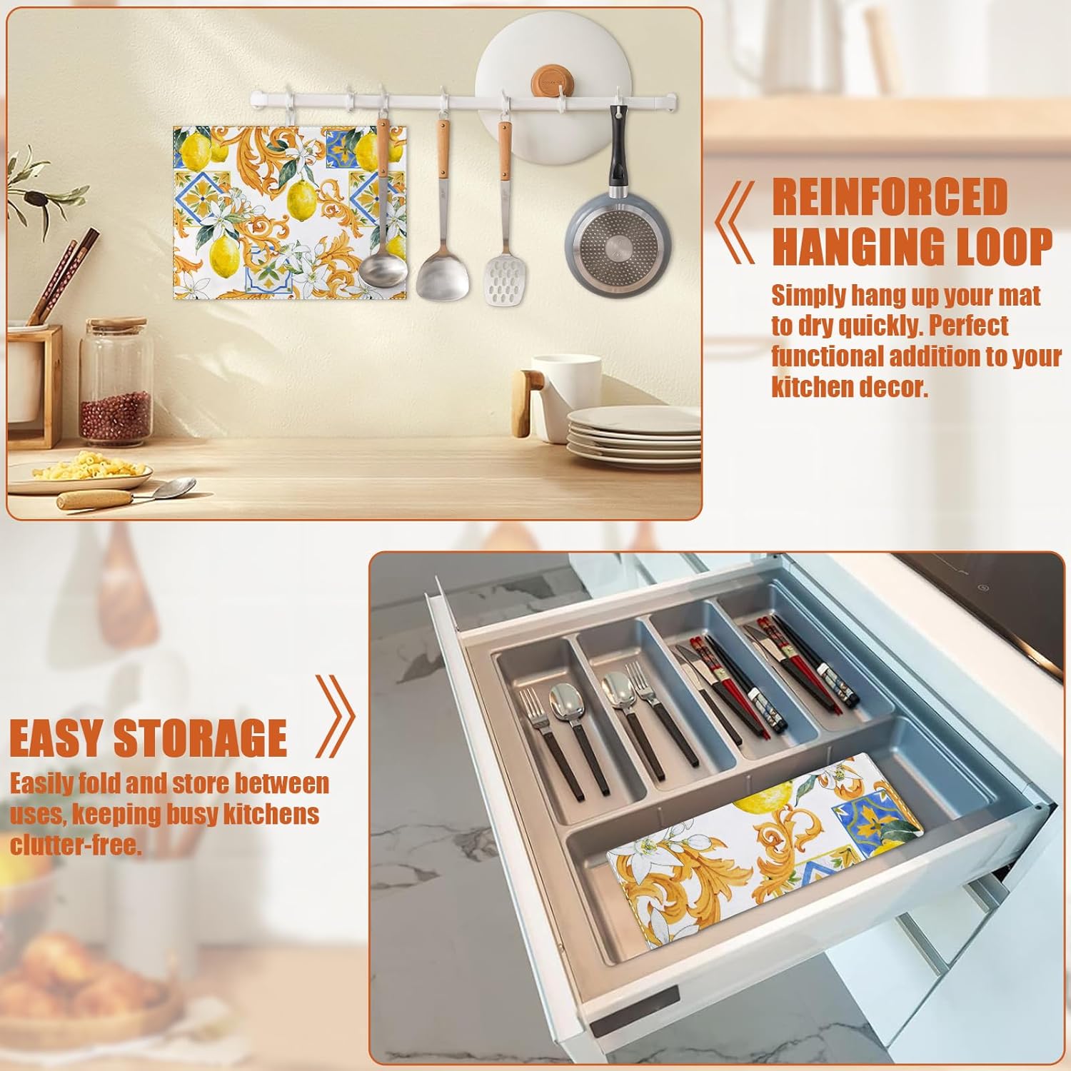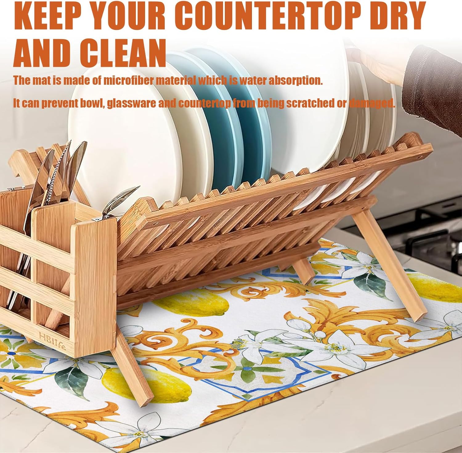 • 【Easy to Clean】The utensil drying mat can be cleaned by hand or machine to remove stains, the kitchen utensil drying mat to dry quickly without a machine. HD printed suede has excellent color lock, does not fade and can be reused many times.