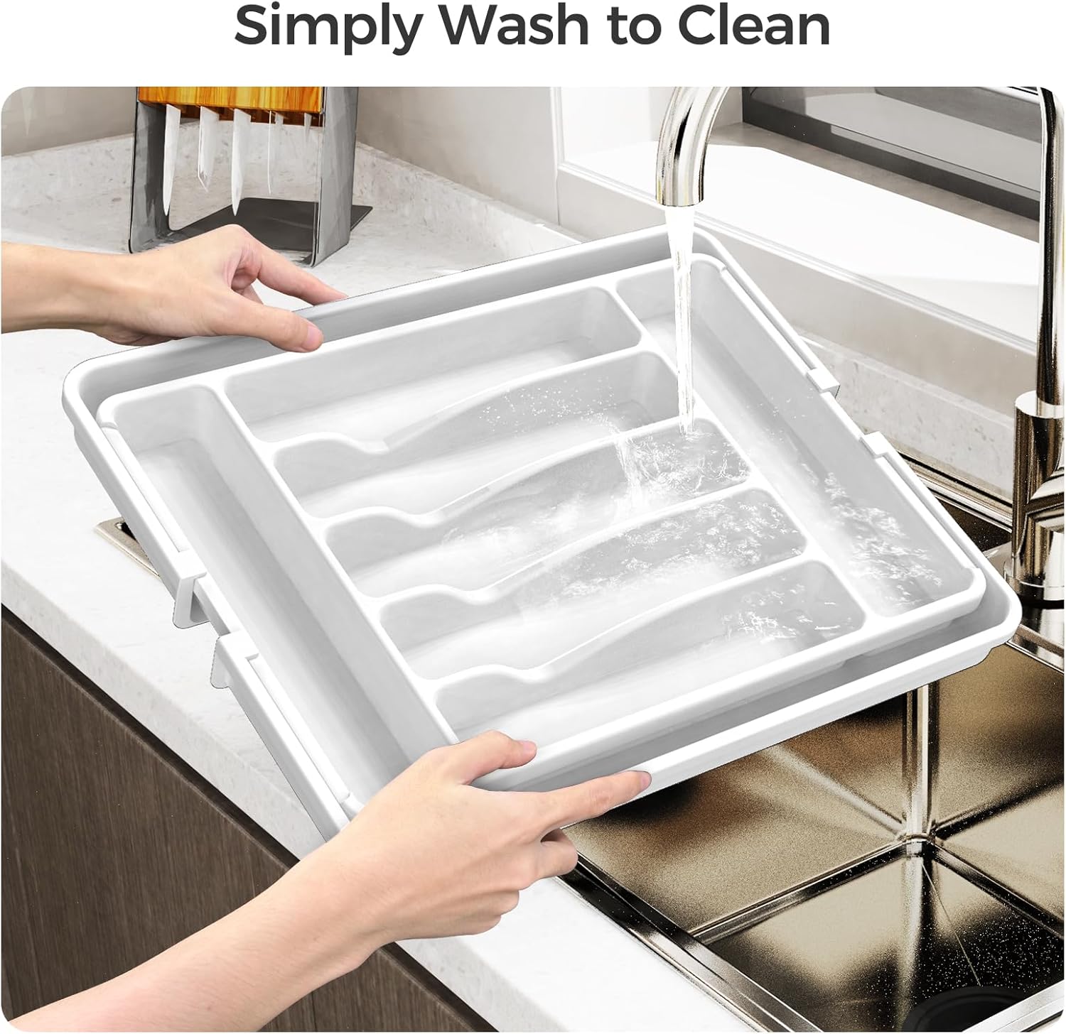 • 【Adjustable Size】:The width of the utensil drawer organizer expands from 12.4" to 21", perfectly fitting most standard drawers. (Measure your drawer before buying for the best fit).