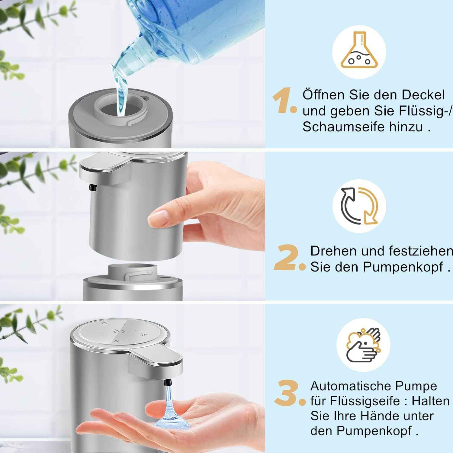 • 🌻 【USB Type-C Charge Liquid Soap Dispenser】-- Built-in 1200 mAh battery(It usually takes 2-3 hours to charge) allows this foam soap dispenser could last for 20-60 days on a single charge (Base on the frequency of use) , USB Type-C Rechargeable automatic soap dispenser no need to replace your battery .
