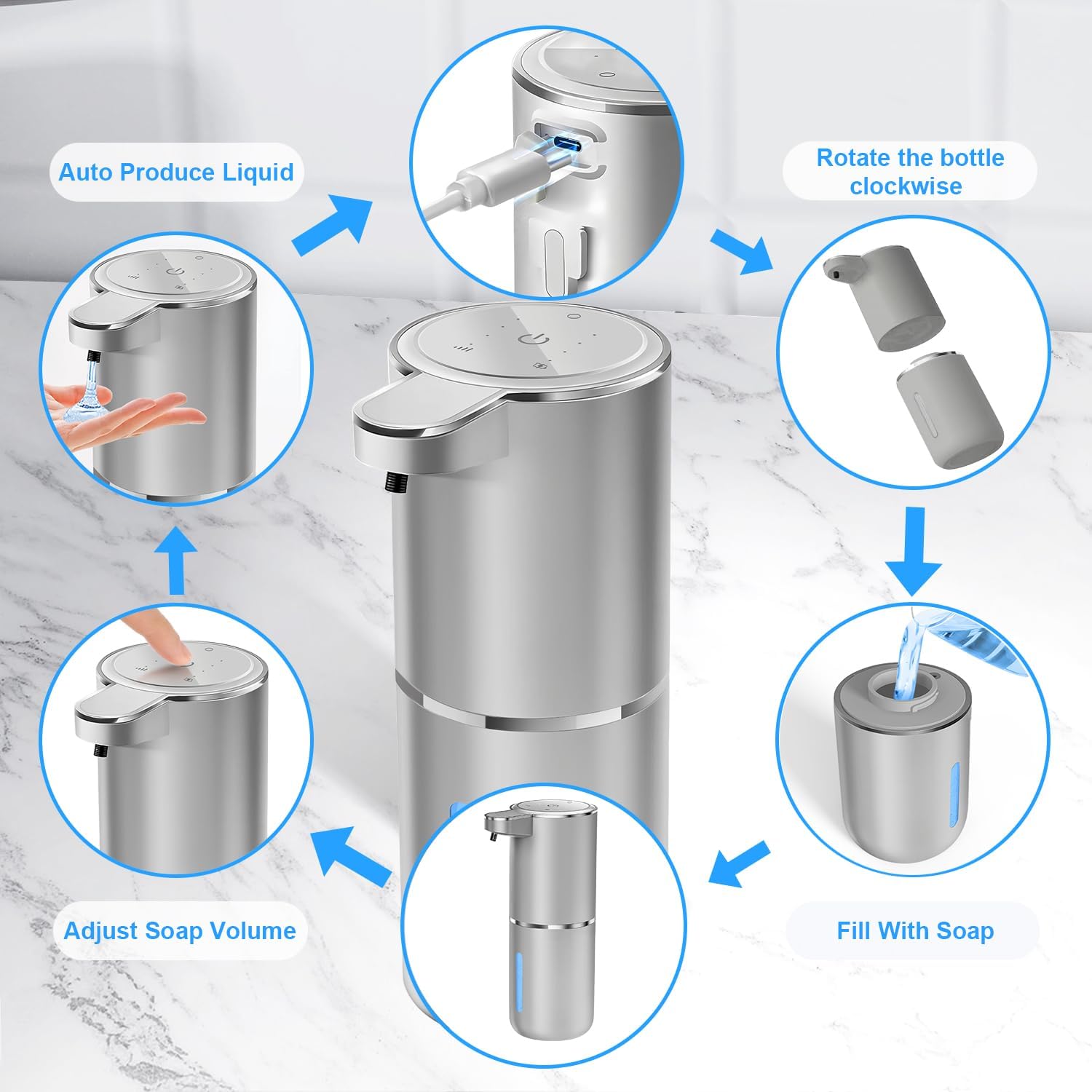 • 🌻【IPX5 Waterproof Level Foaming Soap Dispenser】-- IPX5 waterproof design can effectively avoid soap or water from corroding the electric soap dispenser , USB charging port rubber plug effectively waterproof .