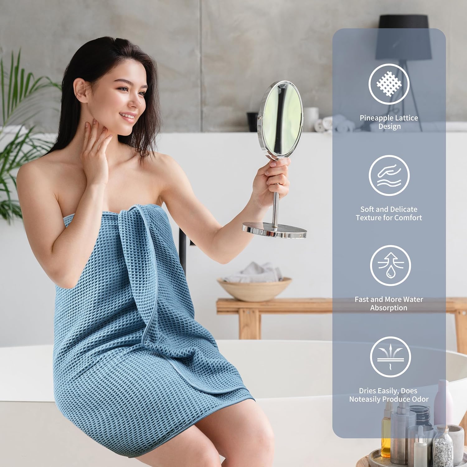 • Microfiber thoroughly dries faster and gentler than traditional fibers; waffle weave feels smoother on your skin and is less likely to collect lint or debris