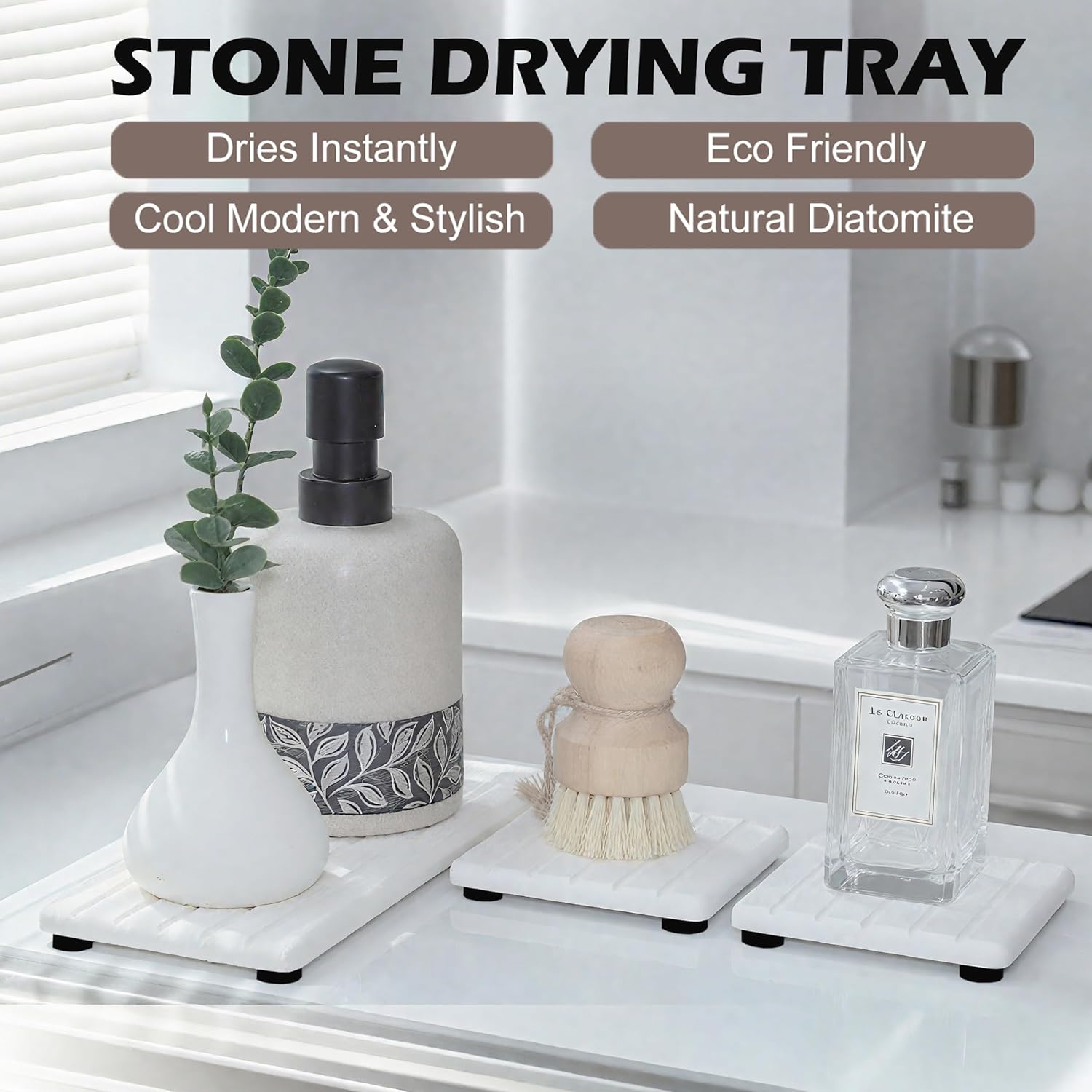 • Multi-use --- This water absorbing stone tray is suitable for bathroom sink, kitchen counter and other scenes. It can be used as soap/water cups/hand soap bottles/dishwashing sponges/make-up bottles etc absorbent pads; Use our absorbent stone trays to keep your sink / counter dry and clean, making life tidy and orderly.