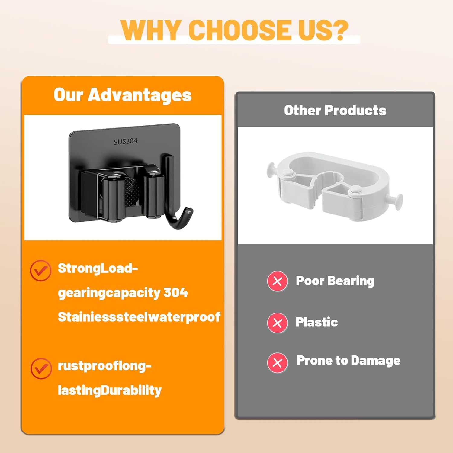 • Anti-Slip Design: Features upgraded anti-slip grips to securely hold mops, brooms, and other tools in place, even in high-traffic areas.