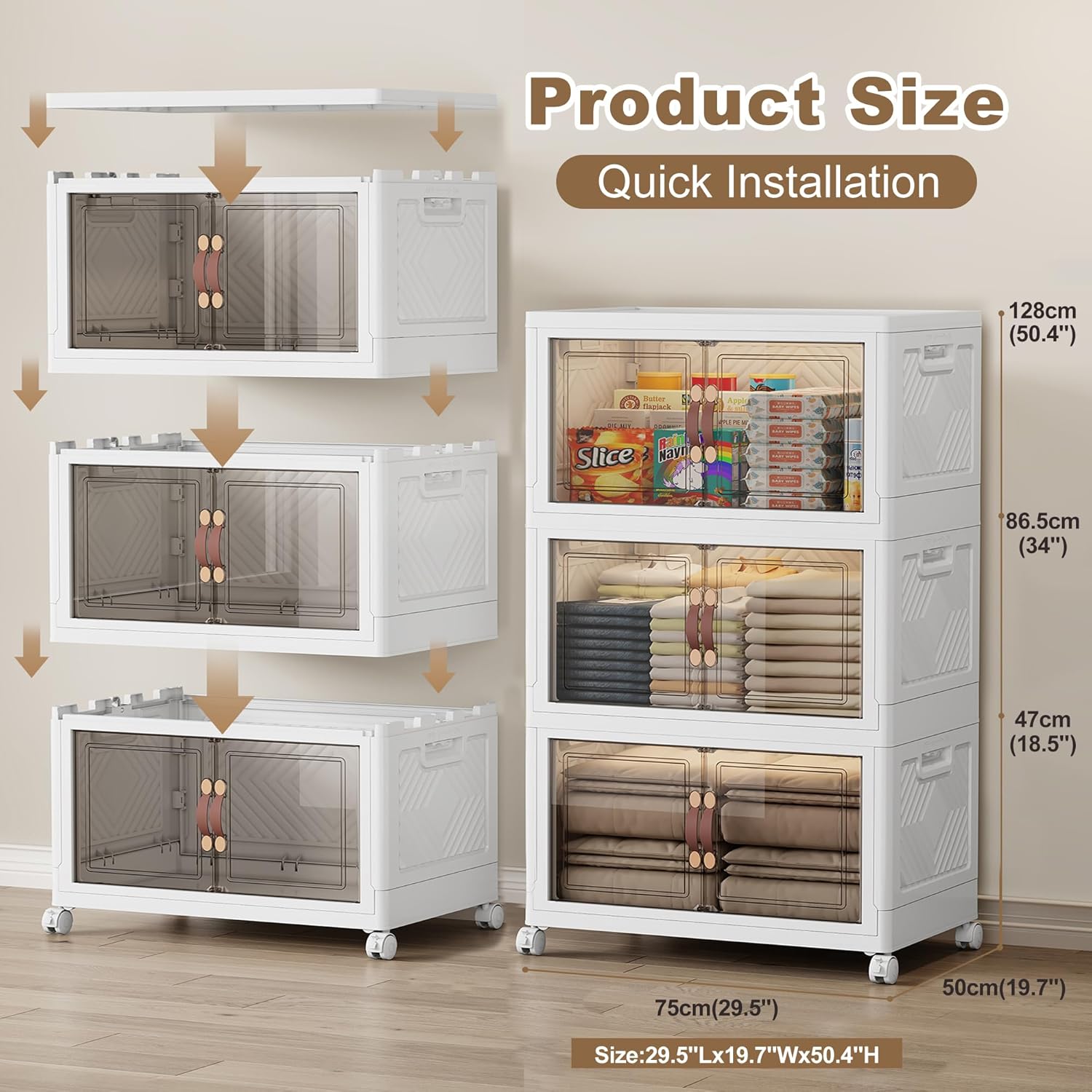 • 【Smooth Rolling Convenience】Utilise our four wheels (2 regular + 2 wheels with brake pads) - glide your storage bin easily over any floor surface. Ultra-quiet wheels ensure seamless movement without scratches or noise, while a secure locking mechanism keeps the stacking storage bin firmly in place during storage.