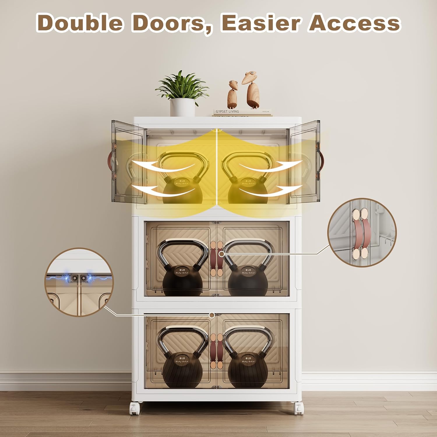 • 【Dual Access Design】:You can choose between a front door with a magnetic latch handle (for regular small items) or an overhead door (for accessing bulky items such as blankets, luggage or holiday decorations). The magnetic door design ensures that nothing falls out and opens smoothly. Large stackable storage bins stores more items.